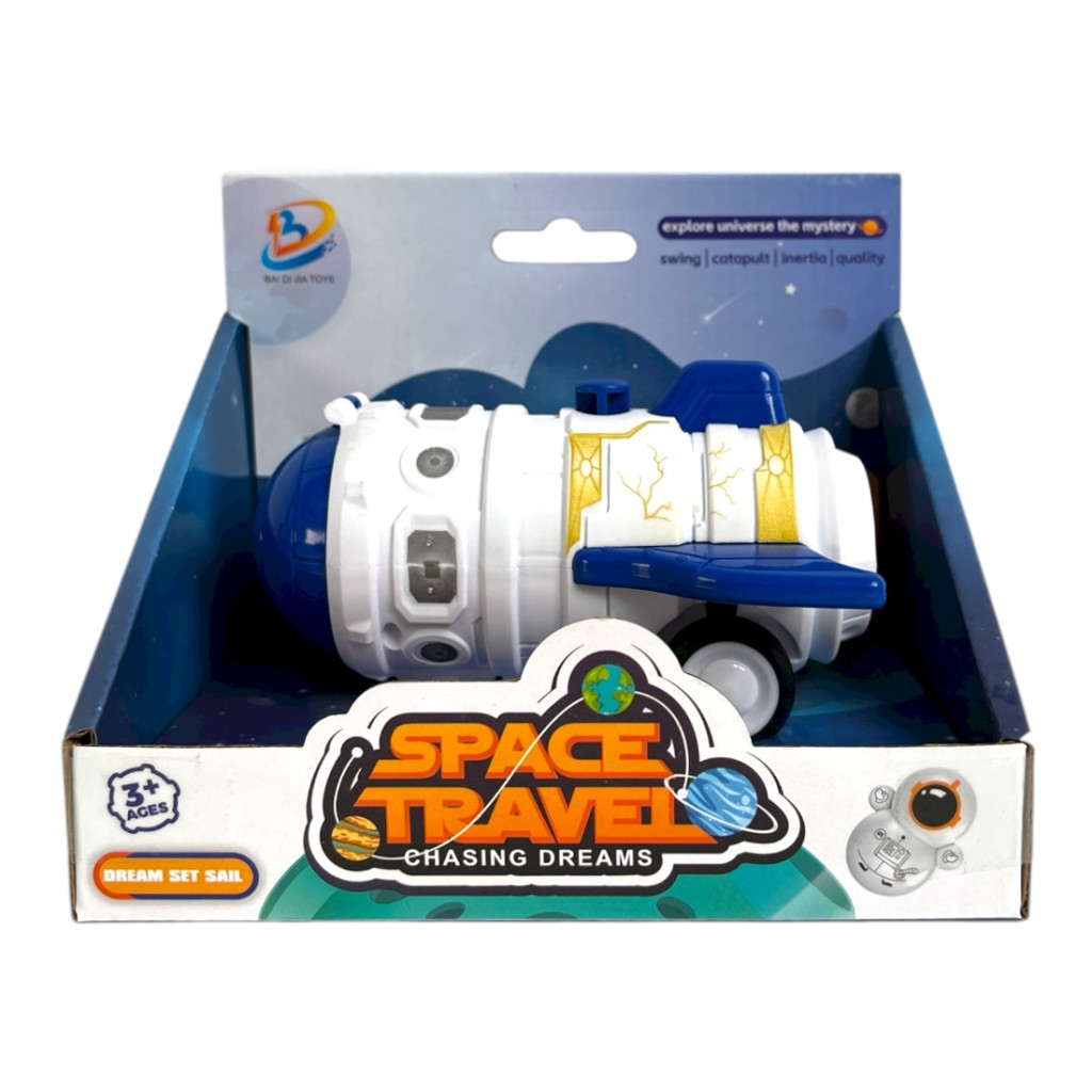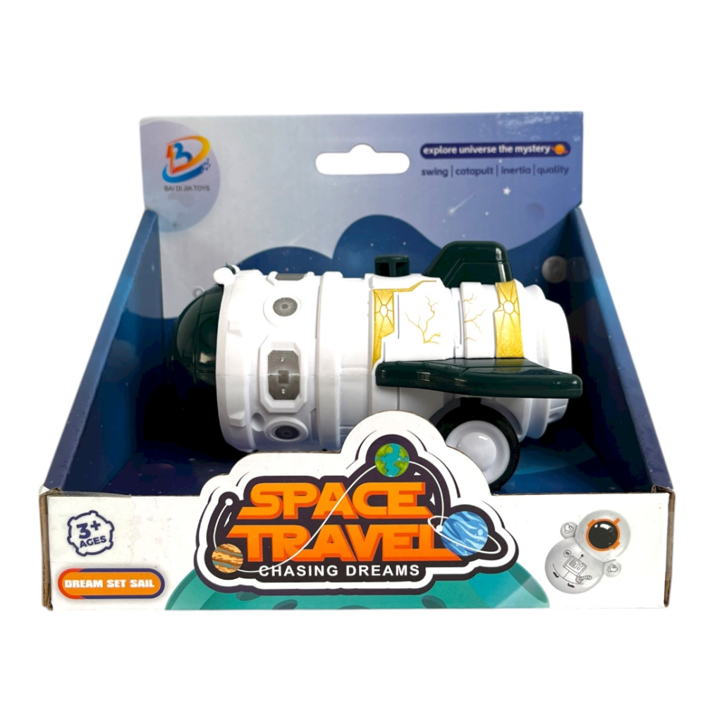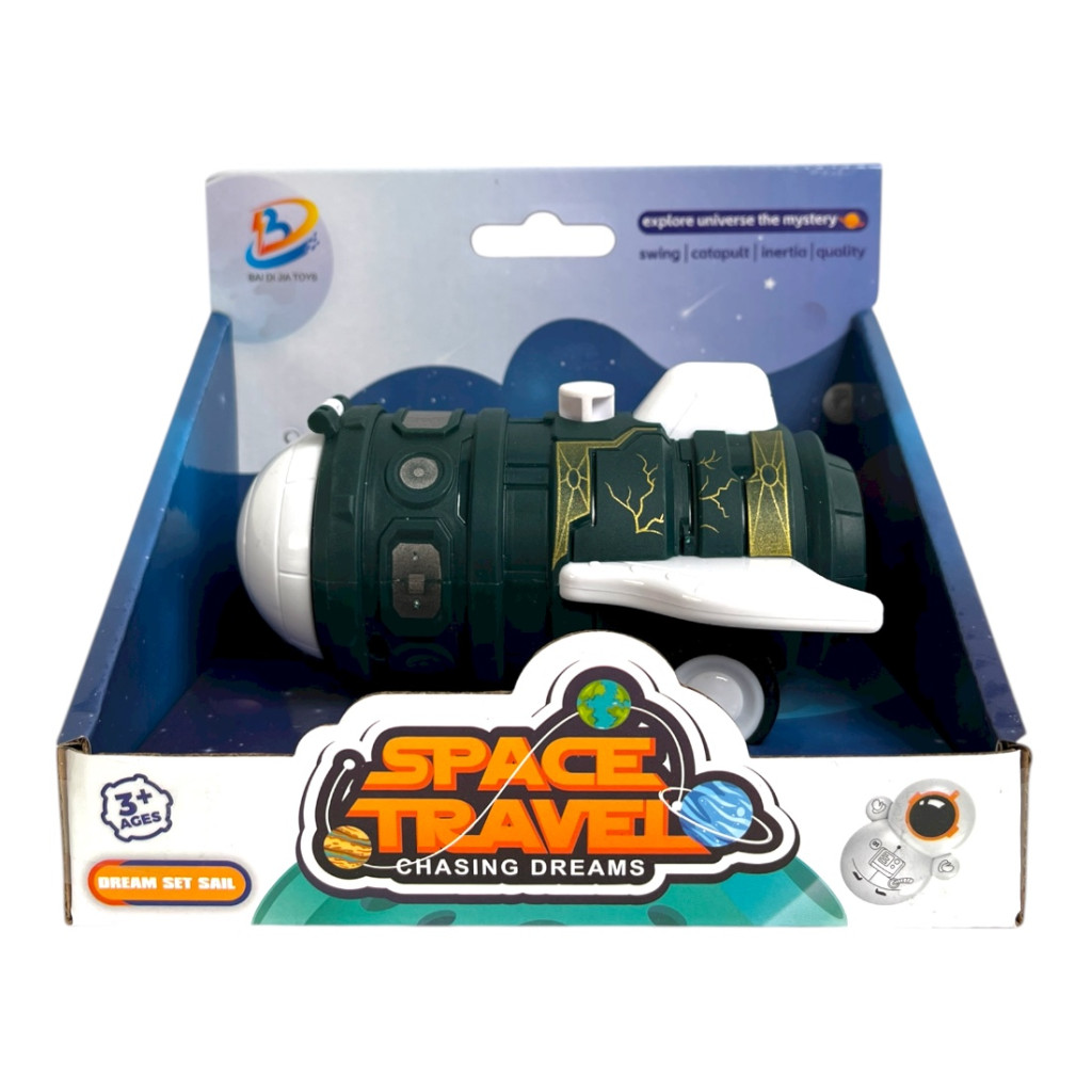 A rakéta lendkerekes mechanizmussal működik: ha a gyerekek előretolják, magától gurul tovább, így még izgalmasabbá teszi a játékot. A futurisztikus kialakítás és a részletes kidolgozás ösztönzi a képzeletet és a szerepjátékot.