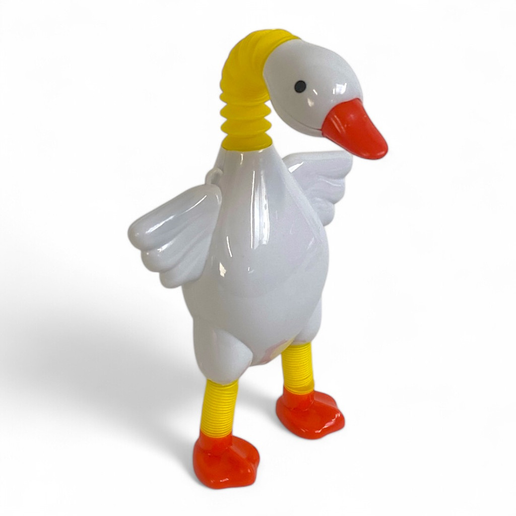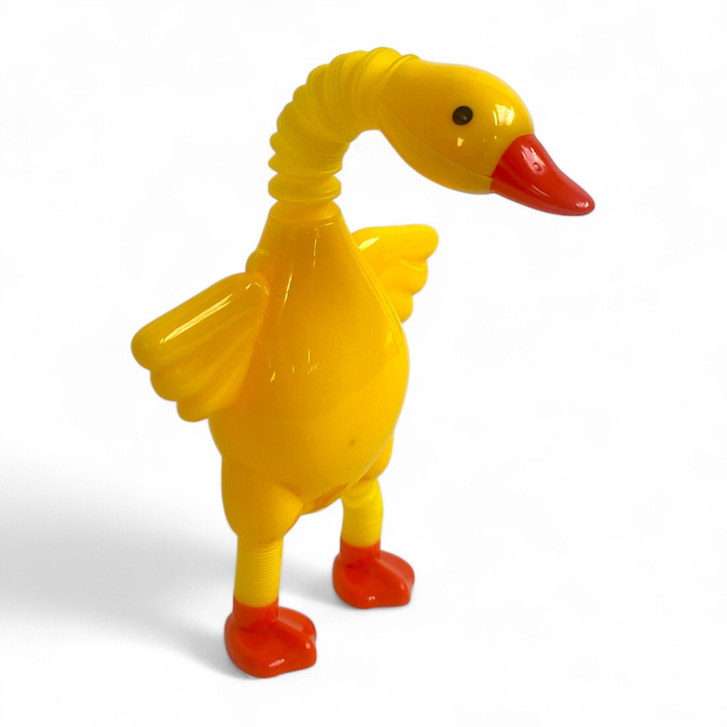 A kacsa rugalmas nyaka és mozgatható lábai különleges játékélményt nyújtanak, miközben fejlesztik a gyerekek finommotorikus készségeit és kreativitását.