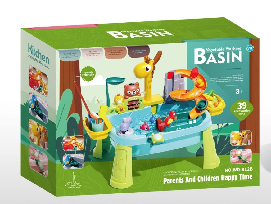 Ez a színes vízijáték asztal garantáltan órákra leköti a gyerekeket, miközben játékosan ismerkednek a víz mozgásával és működésével. Az elemes vízáramlás és a beépített mosogató még élethűbb élményt nyújt, így a kicsik saját kis vízi világot hozhatnak létre.