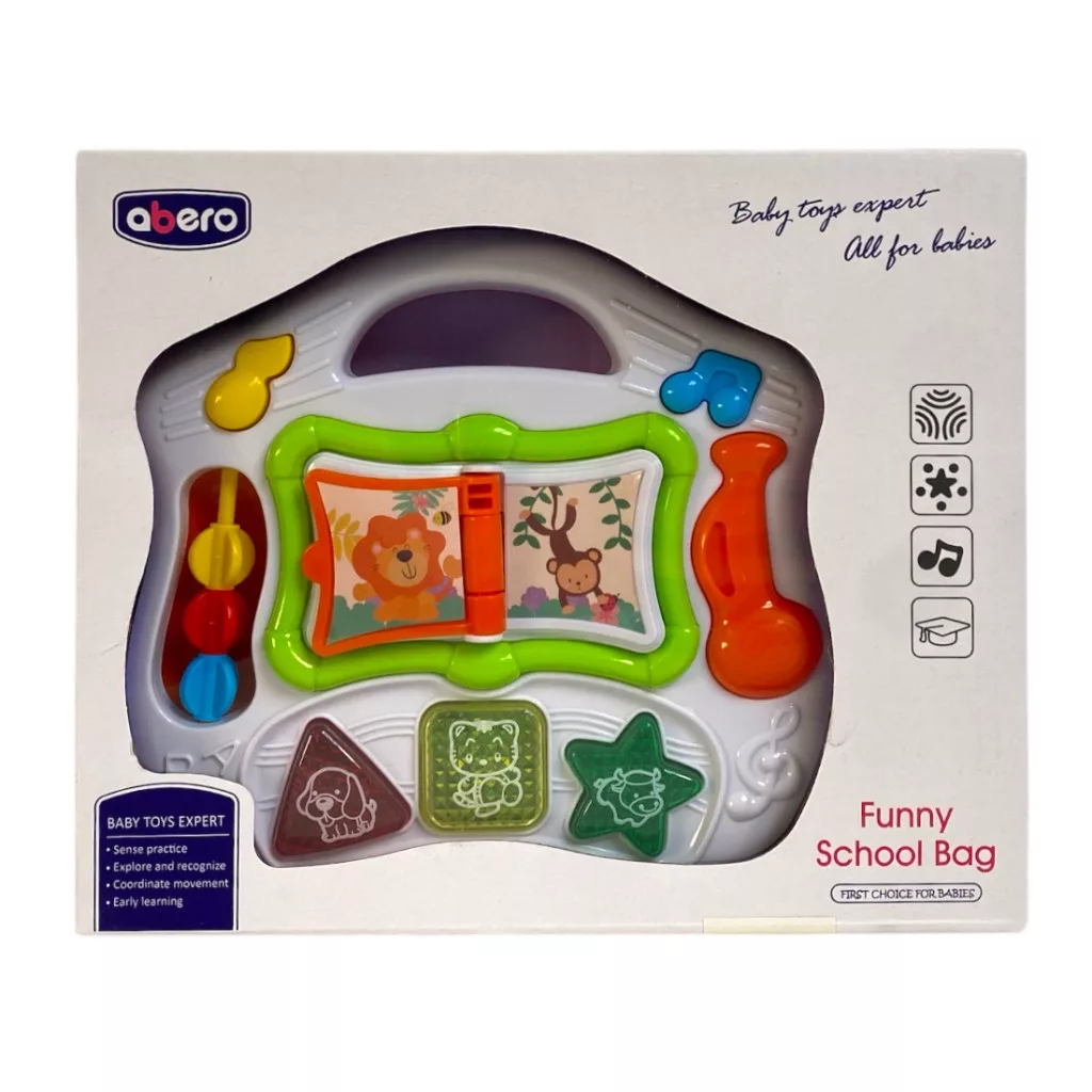Vidám zenélő bébi activity játék, amely mozgatható elemekkel, lapozható könyvecskével és hangokkal segíti a legkisebbek fejlődését.