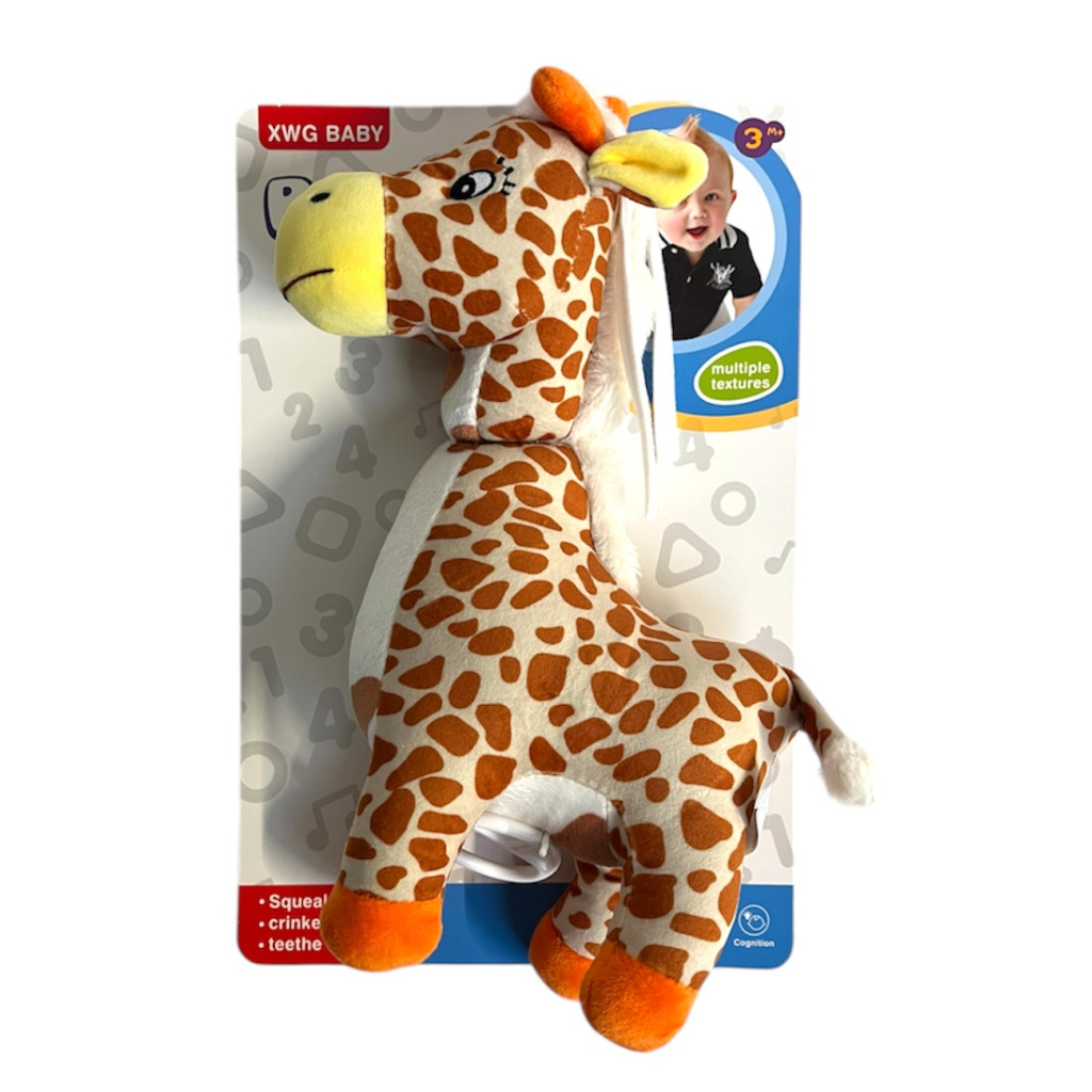 Ez a bájos plüss zsiráf felhúzás után lágy dallamot játszik, amely megnyugtatja a babát. Puha anyaga és kedves megjelenése ideális alváshoz és pihenéshez.