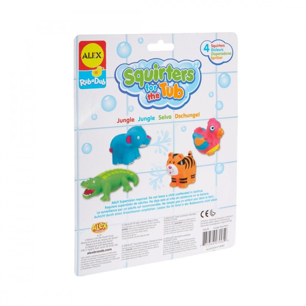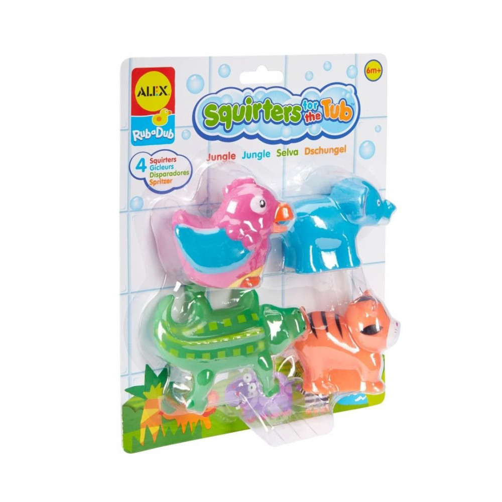 Az Alex fürdőszobai játékokkal csupa vidámság a fürdés! A készlet 4 darab puha műanyagból készült, állatfigura spriccelőt tartalmaz. 6 hónapos kortólnapos kortól ajánlott termék, amely biztonságos, ftalátmentes műanyagból készült.