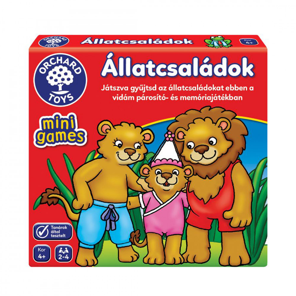 Állatcsaládok mini játék, Orchard Toys egy párosító és memória társasjáték. Minden családnak 3 tagja van: anyuka, apuka, bébi. Ha szerencsés vagy és joker lapot húzol, a többiektől is megszerezhetsz egy teljes családot.