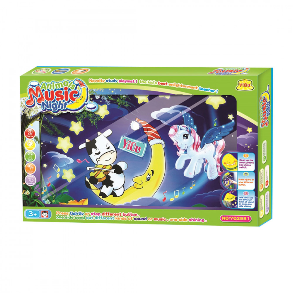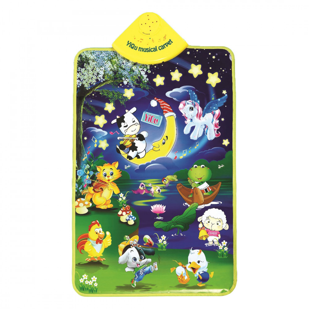 Ez a kedves figurákat ábrázoló zenélő játszószőnyeg remek szórakozás a kicsiknek, tapintásra sokféle állathangot és kellemes dallamot játszik le.