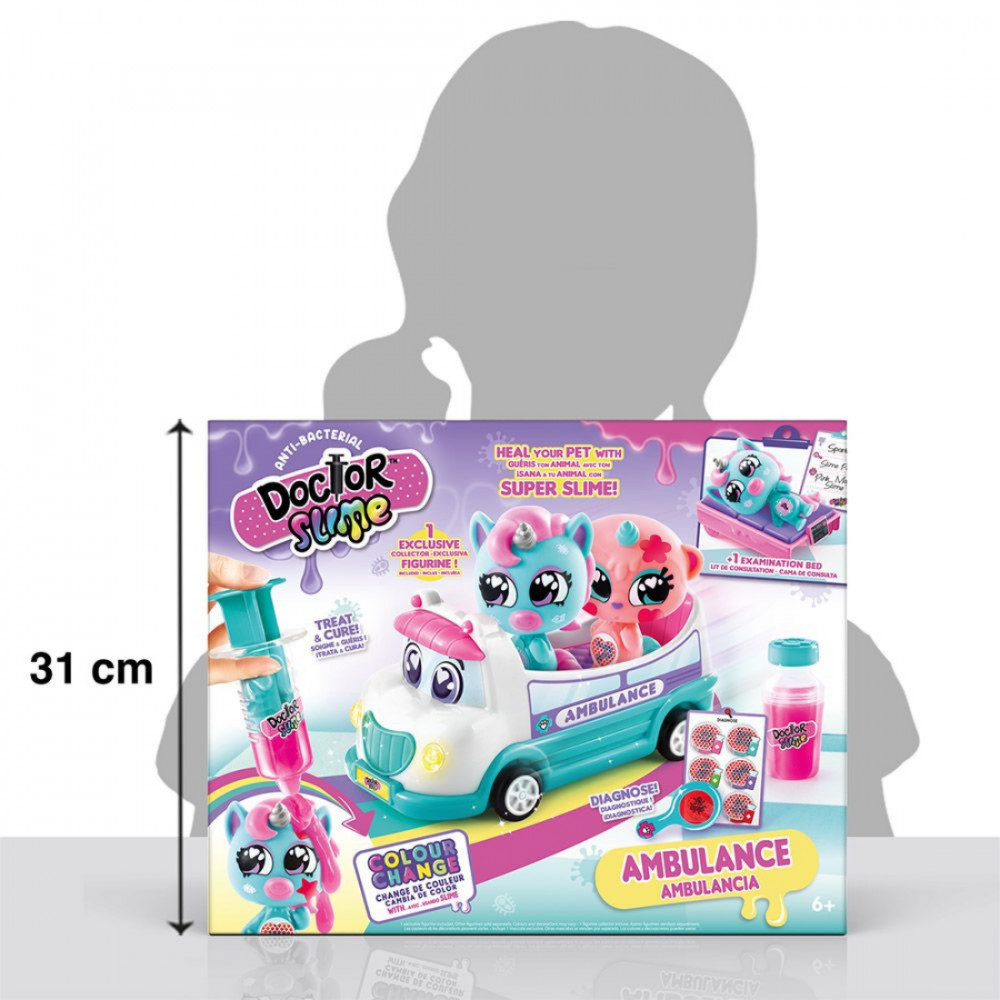 Csomagolási méret: 37 x 11 x 31 cmTartalom: 1 db mentőautó, 1 db vizsgálóágy, 1 db fecskendő, 1 db figura, 1 üveg Slime, 1 db vizsgálólap.