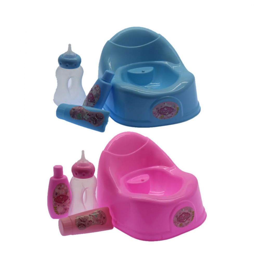 Gondoskodj játékbabáidról ezzel a babápoló készlettel! A szettben egy bilit, egy cumisüveget és babaápolós flakonokat találsz, így az etetést, a fürdetést és a biliztetést is végig tudod játszani.
