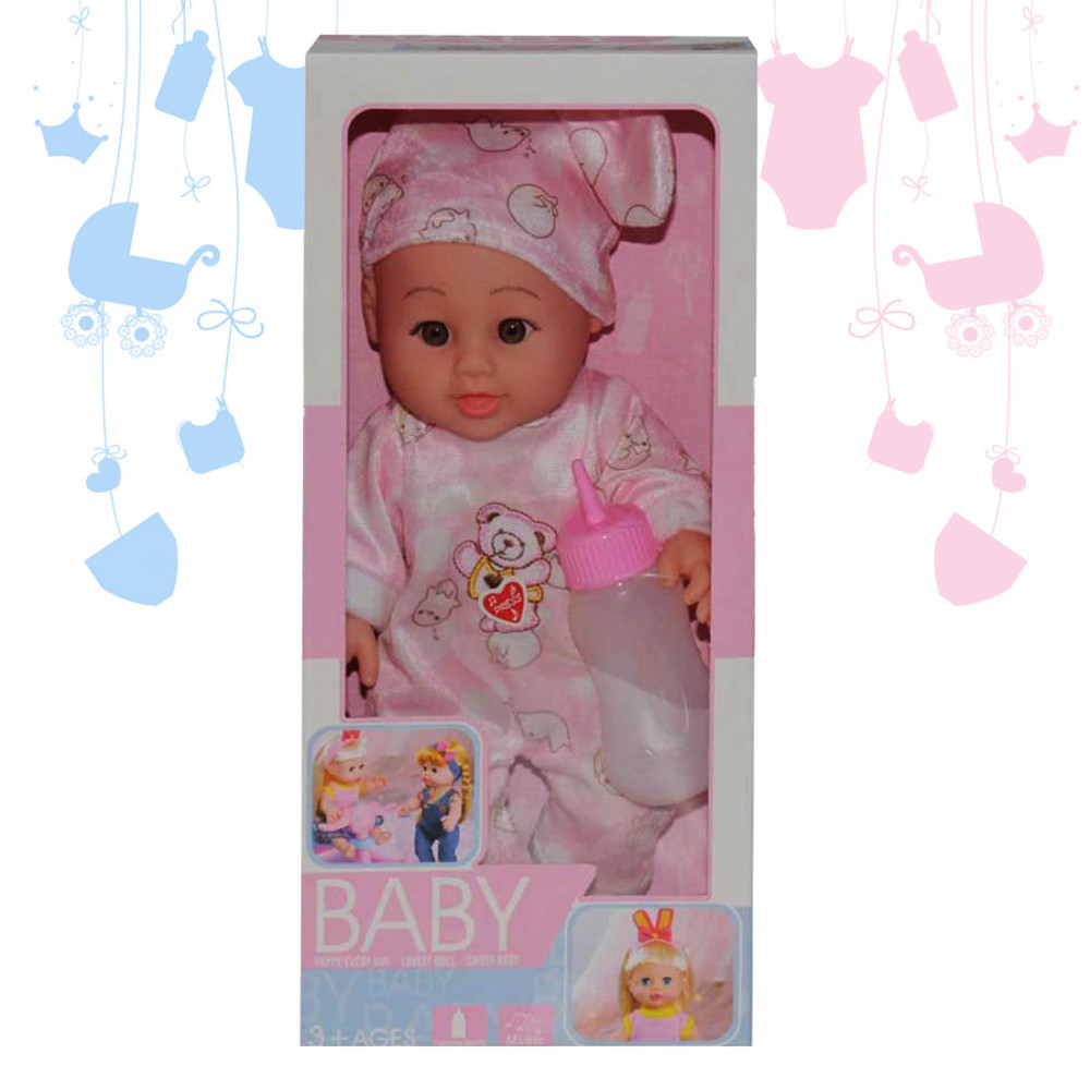 Ez a hagyományos baba tökéletes választás a klasszikus játékokat kedvelő gyermekek számára. Puha teste lehetővé teszi az ölelgetést, és a gondoskodó játékot is, míg élethű üvegszemei még valóságosabbá teszik az élményt. A baba kék és rózsaszín ruhácskában érkezik, aranyos mintákkal, melyek igazi kedvenccé teszik a kicsik körében. A hozzá tartozó cumisüveg segít a gyermekeknek elmerülni a gondoskodó szerepjátékban. Ez az egyszerű, hagyományos baba örömet és szórakozást nyújt, miközben a klasszikus játékélményt hozza el a gyerekszobába.