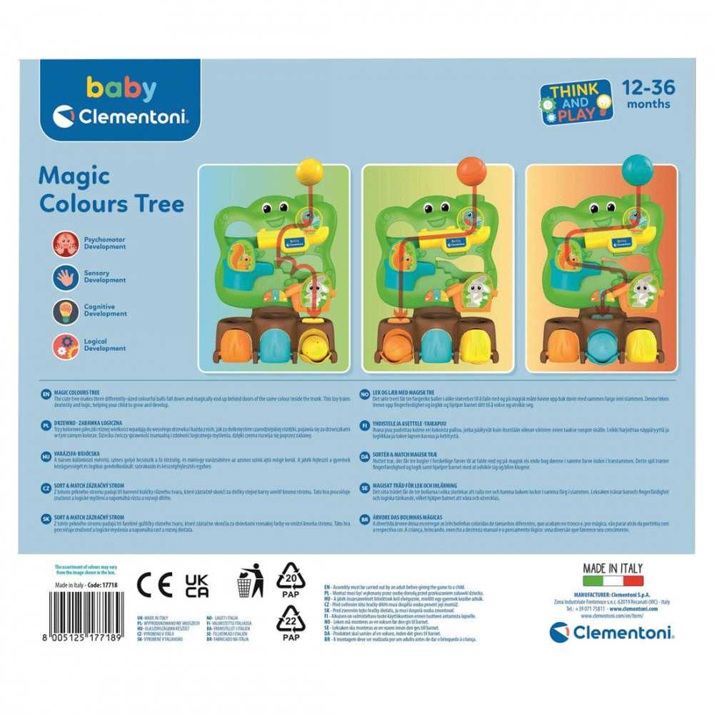 Ez a fa szórakoztató, csúszdával, labdával és ajtóval felszerelt. Segít a kisgyermekek logikai gondolkodásának fejlesztésében, a kézügyesség finomításában, valamint a ok-okozati kapcsolat megértésében. Olaszországban készült újrahasznosított műanyagból, a Játék a Jövőért megközelítéssel összhangban. A három labda mindegyike más méretű, egy fatusba esik és varázslatos módon az azonos színű ajtó mögé kerül. Fejleszti a manuális készségeket (labda fogás, ajtónyitás), a kéz-szem koordinációt (a labdák behelyezése a lyukon keresztül) és a logikai gondolkodást. Élénk, színes és szórakoztató dizájn fa formájában.