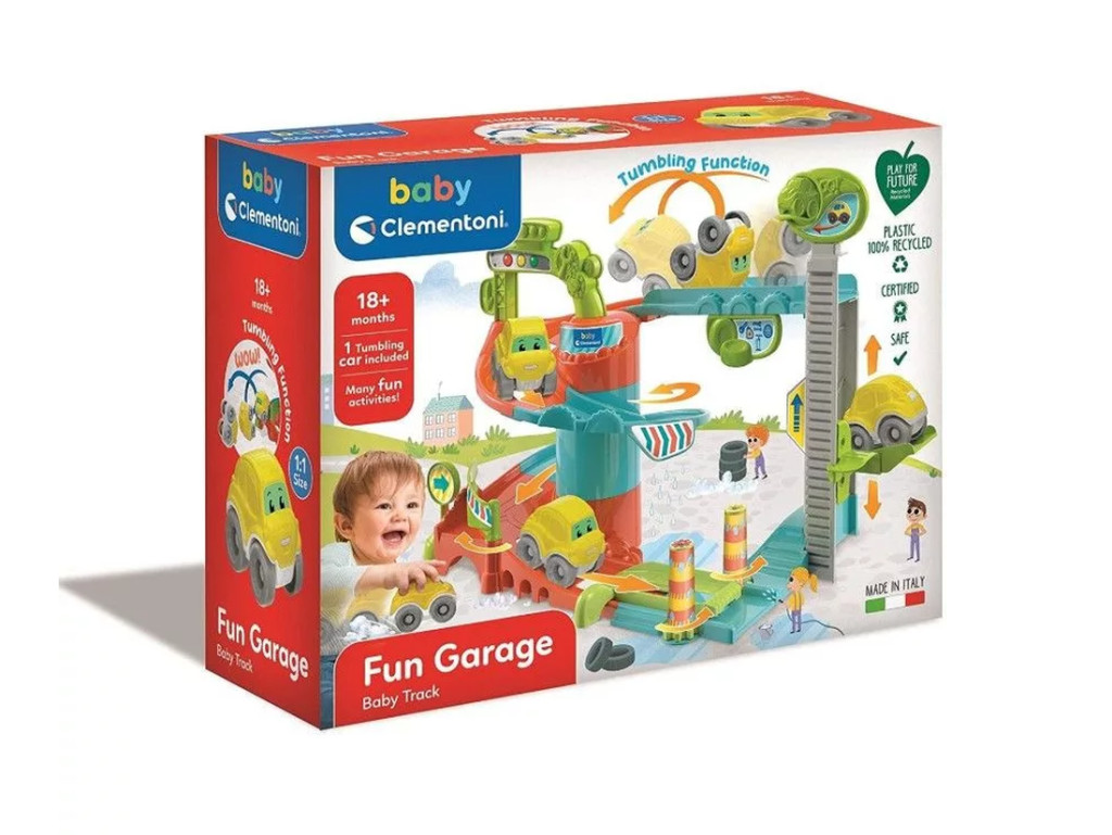 A Baby Clemmy - Garázs Parkoló készlet, Bukfencező kisautóval tökéletes választás a legkisebbek számára, hiszen nemcsak szórakoztató, hanem fejlesztő is! A szett egy többfunkciós, színes garázsból és egy imádnivaló, bukfencező kisautóból áll, amely magától forog, bukfencezik, amikor elindítják. A garázs különböző szintekkel rendelkezik, így a gyerekek szabadon kísérletezhetnek a kisautóval, akár felfelé gurítva, akár lejtőn lefelé irányítva azt.A garázs egyszerűen összeállítható, stabil és strapabíró, így hosszú ideig tartó játékélményt biztosít.A játék támogatja a finommotoros készségek fejlesztését, segíti a kéz-szem koordinációt, valamint ösztönzi a térbeli tájékozódást és a logikus gondolkodást. A Clemmy játékok kiválóak a kicsik számára, mivel teljesen biztonságosak, könnyen tisztíthatók, és a gyerekek számára is könnyedén kezelhetők. Ideális 18 hónapos kortól, a játék garantáltan örömet szerez, miközben fejleszti a gyerekek különböző képességeit!