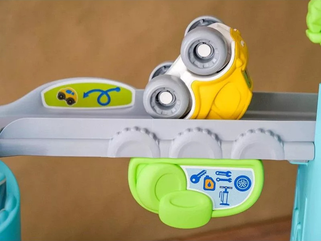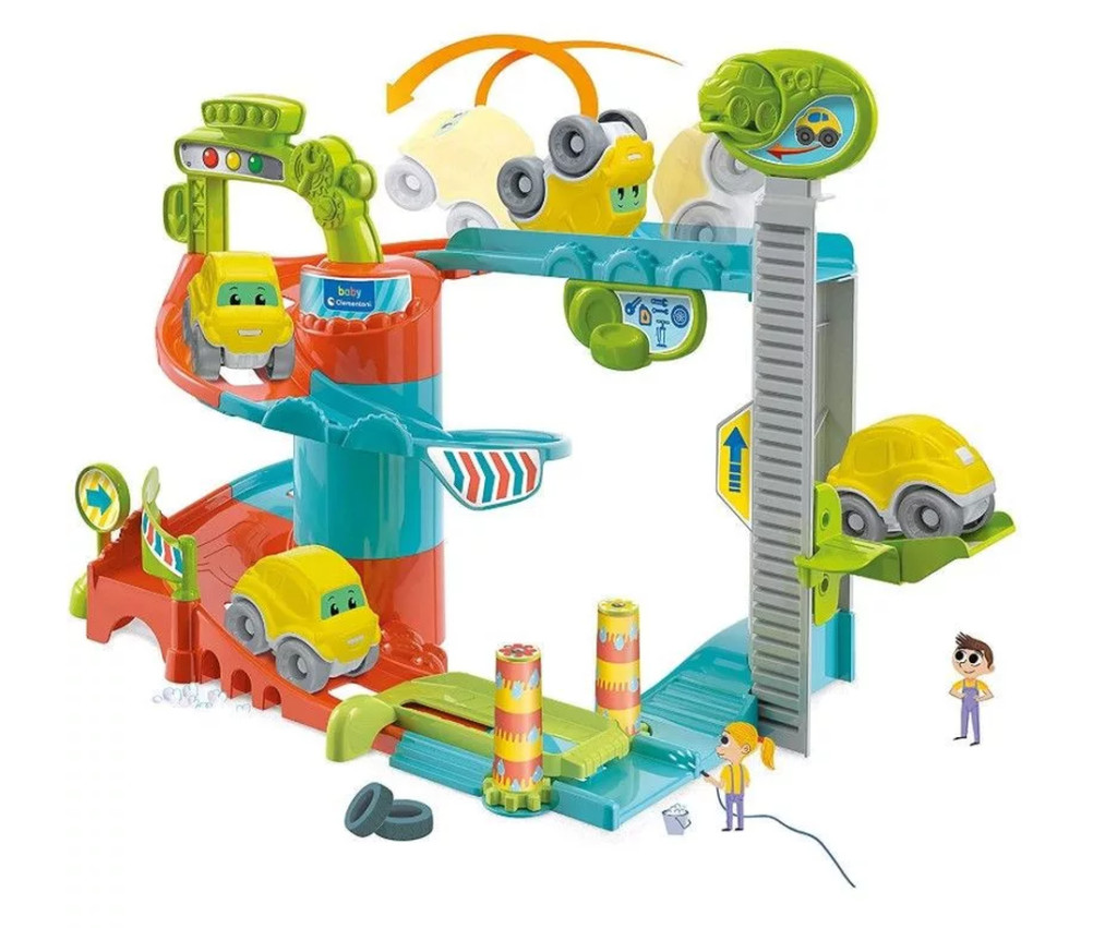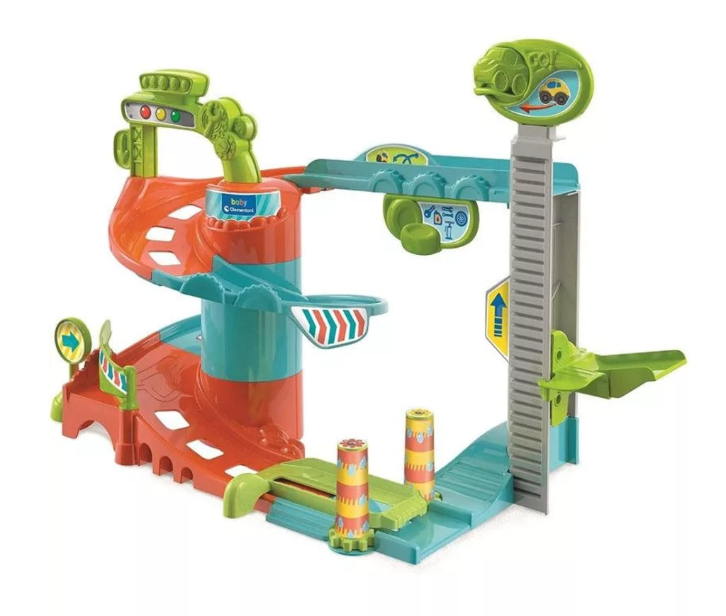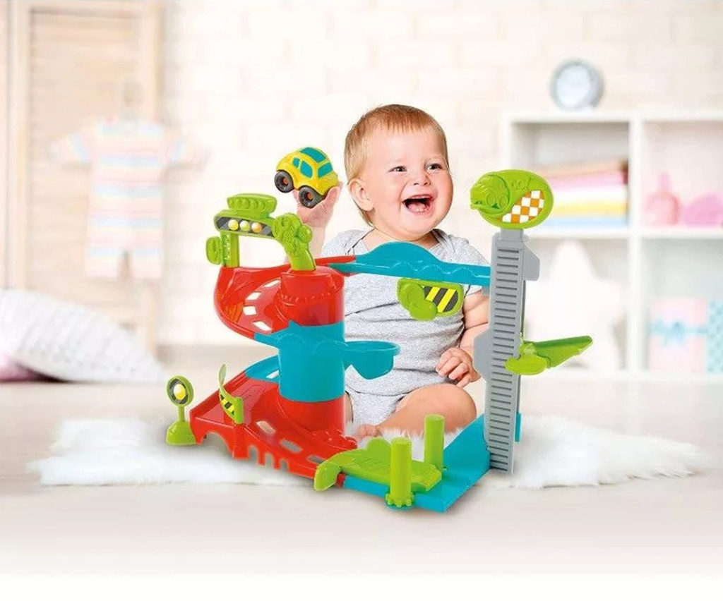 A Baby Clemmy - Garázs Parkoló készlet, Bukfencező kisautóval tökéletes választás a legkisebbek számára, hiszen nemcsak szórakoztató, hanem fejlesztő is! A szett egy többfunkciós, színes garázsból és egy imádnivaló, bukfencező kisautóból áll, amely magától forog, bukfencezik, amikor elindítják. A garázs különböző szintekkel rendelkezik, így a gyerekek szabadon kísérletezhetnek a kisautóval, akár felfelé gurítva, akár lejtőn lefelé irányítva azt.