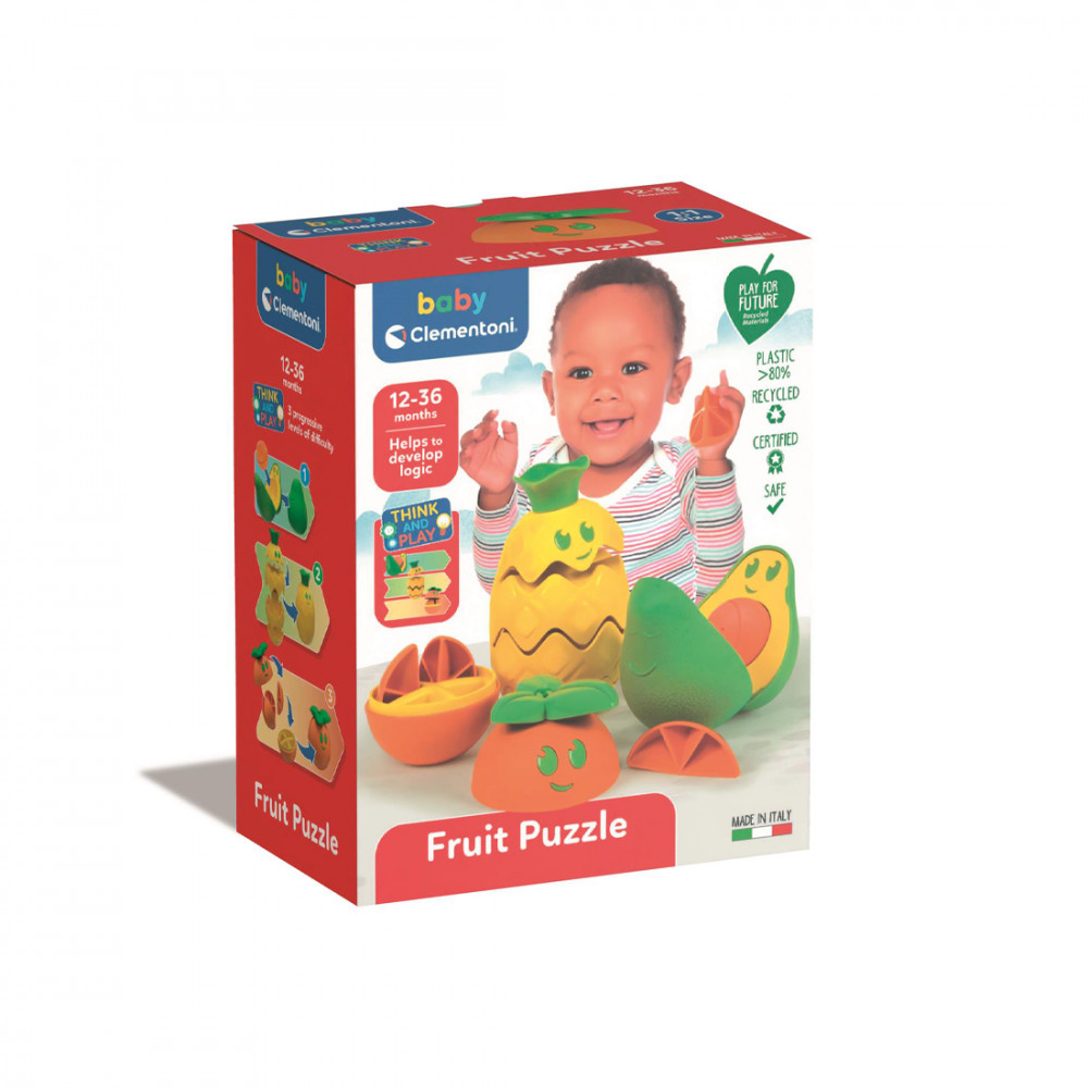A Clementoni bájos gyümölcsei, serkentik a legkisebb gyerekek elméjét és logikáját! Az építhető gyümölcsök különböző típusú, egyre nehezebb játékokkal segítik a logikus gondolkodás fejlődését. Az avokádó kinyílik, és megjelenik a magja, amely kivehető és visszahelyezhető. Az ananászt alkotó elemek egymásra rakhatók. A narancs 4 részre bomlik, amelyeket újra és újra össze lehet illeszteni. Mindegyik gyümölcs más-más kézi gyakorlatra ösztönöz, és egyedi textúrájuknak köszönhetően, különböző érzékszervi élményeket tesznek lehetővé.