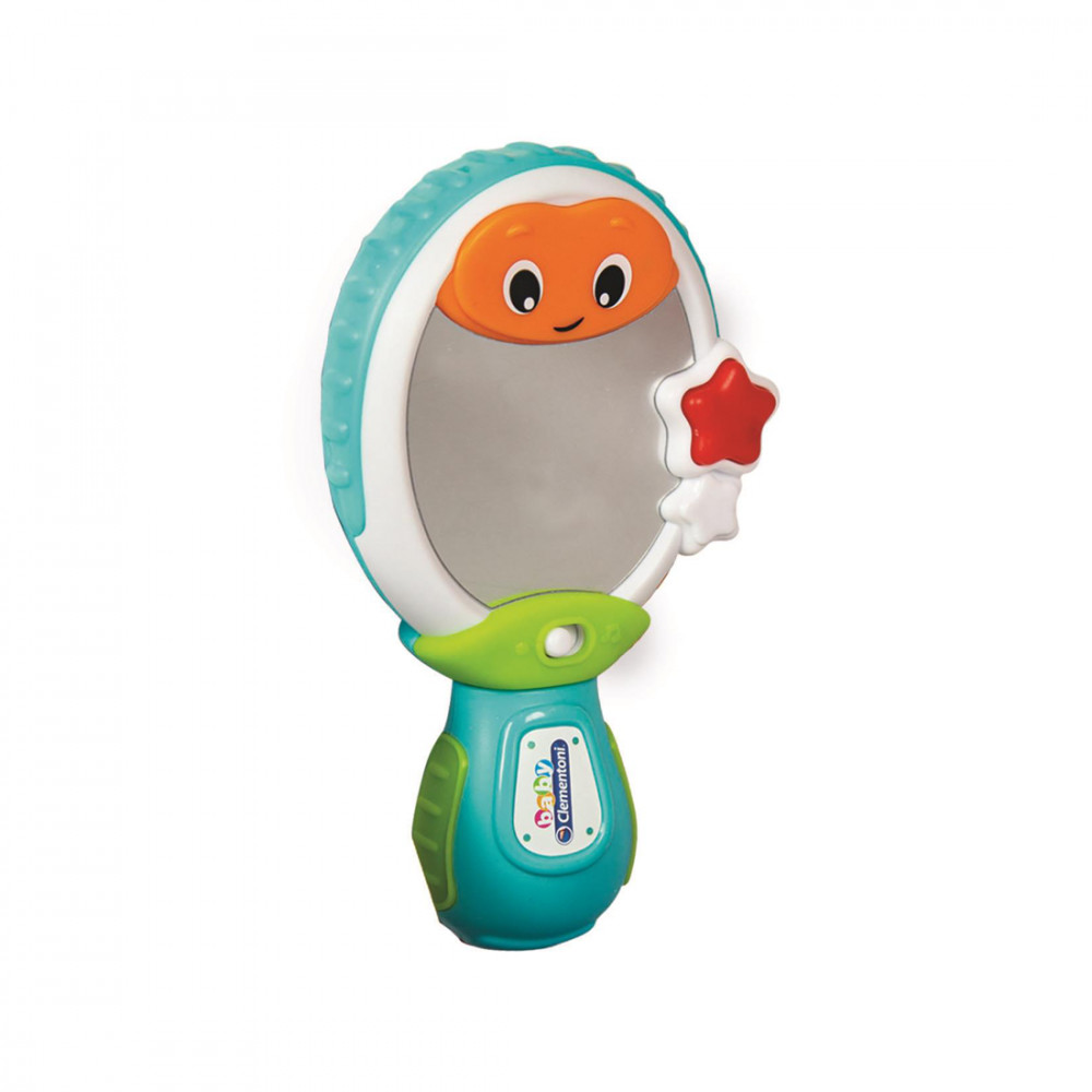 A Baby Clemmy interaktív tükör egy igazán varázslatos játék a babák számára. A tükrök már önmagukban is egy hatalmas lépést jelentenek a kicsiknek az önfelismerés terén. Ez a kis tükör biztos, hogy hosszú időre lefoglalja majd a kegkisebbekez, mivel már csak azzal, hogy önmagukat nézegetik is képesek hosszú perceket képesek eltölteni.A tükör a bekapcsolás után zenél, a csillag gomb villog, valamint annak megnyomásával még különböző hangokon szólal meg, sőt a tükör nyele forgatható és kattogó hangot ad, ezzel is szórakoztatva a kicsiket.