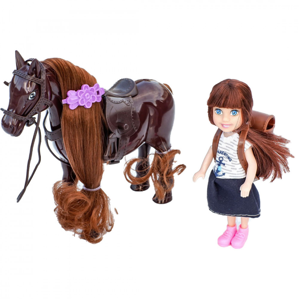 Ülj fel a lovadra és sétálj vele. A baba egy stílusos lovaglóruhába van öltözve.