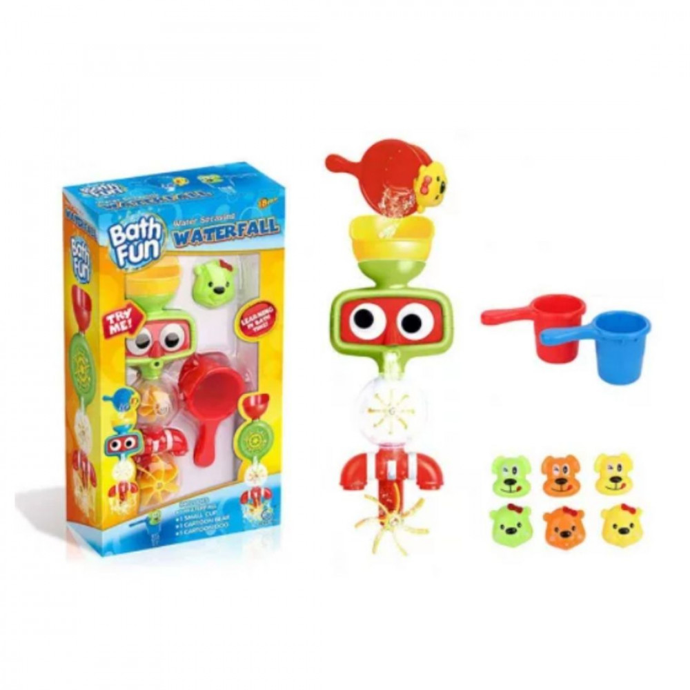 Rengeteg lehetőséget tartogat ez a kádjáték. Tapaszd a kád falára, és figyeljétek együtt a kicsivel, mi történik, ha vizet csorgattok a tetején lévő tölcsérbe! A víz megforgatja a propellereket, és váratlan helyekről fog kicsorogni. A fürdés sosem volt még ilyen vicces, mint ezzel a játékkal.