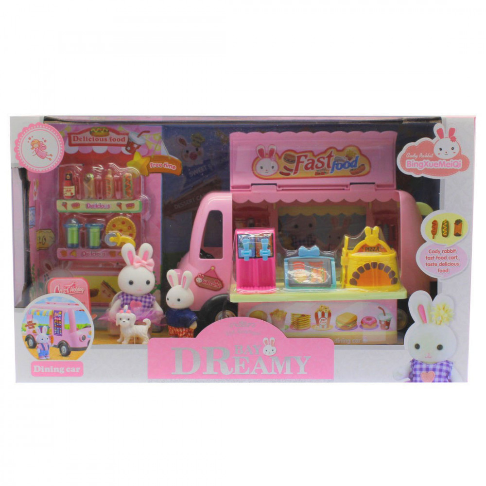 Nyuszóék végre megnyitották a mozgó büfét. Ha ők megállnak egy helyen, az biztos, hogy perceken belül kígyózó sorban állnak az emberek, hogy kaphassanak egy finom hotdogot vagy édességet. Nyuszónak a sok munkában a fia segít, és mindig mellettük van a kutyus is.