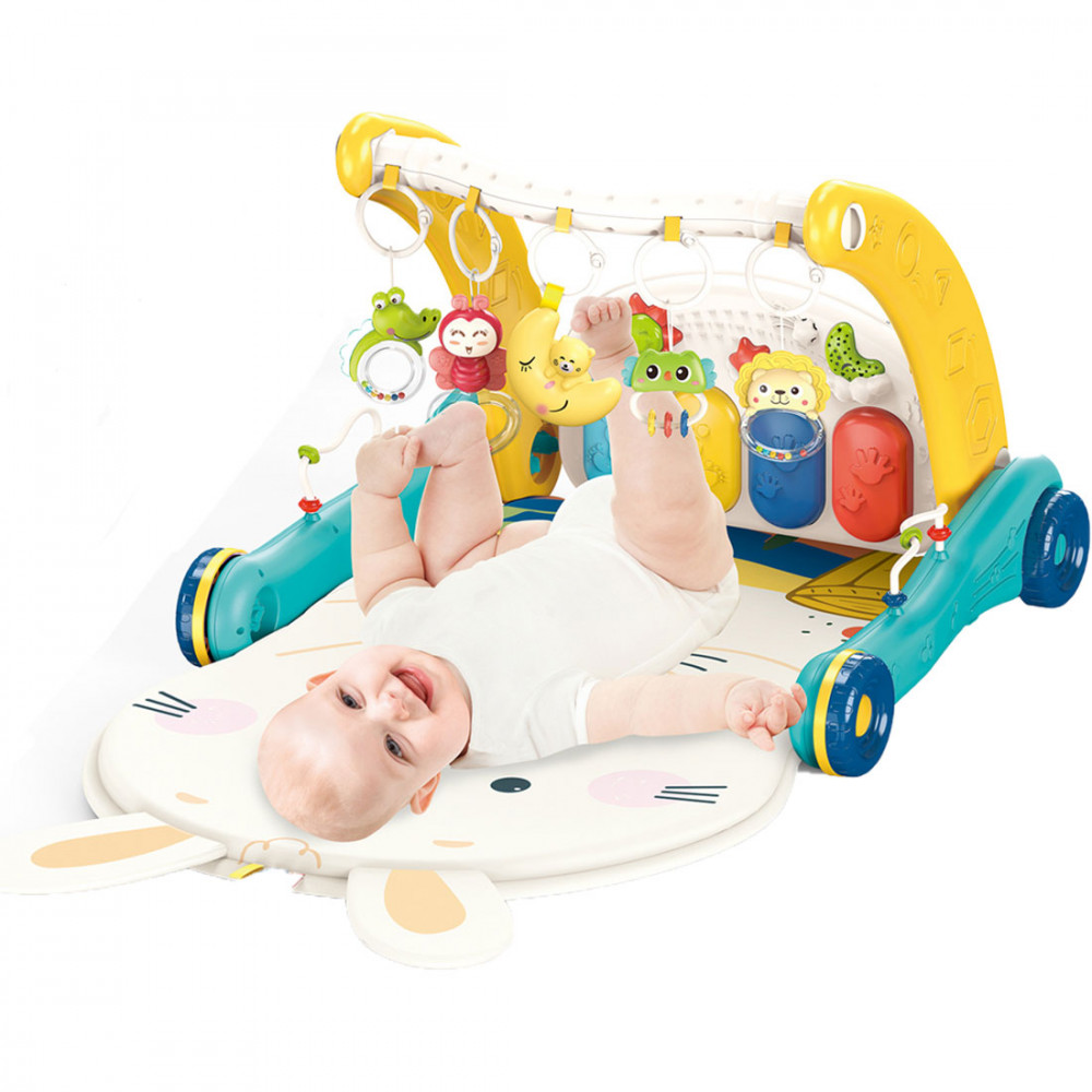 A beépített taposó zongora és az élénk színű játékok nemcsak szórakoztatóak, hanem fejlesztik a baba motorikus készségeit, hallását és érzékelését is. A zenélő funkciók és a fények serkentik az érzékszerveket, miközben a játék közben a baba szórakozva tanul. A puha játszószőnyeg kényelmes felületet biztosít a fekvő vagy ülő játékhoz, így már újszülött kortól használható.