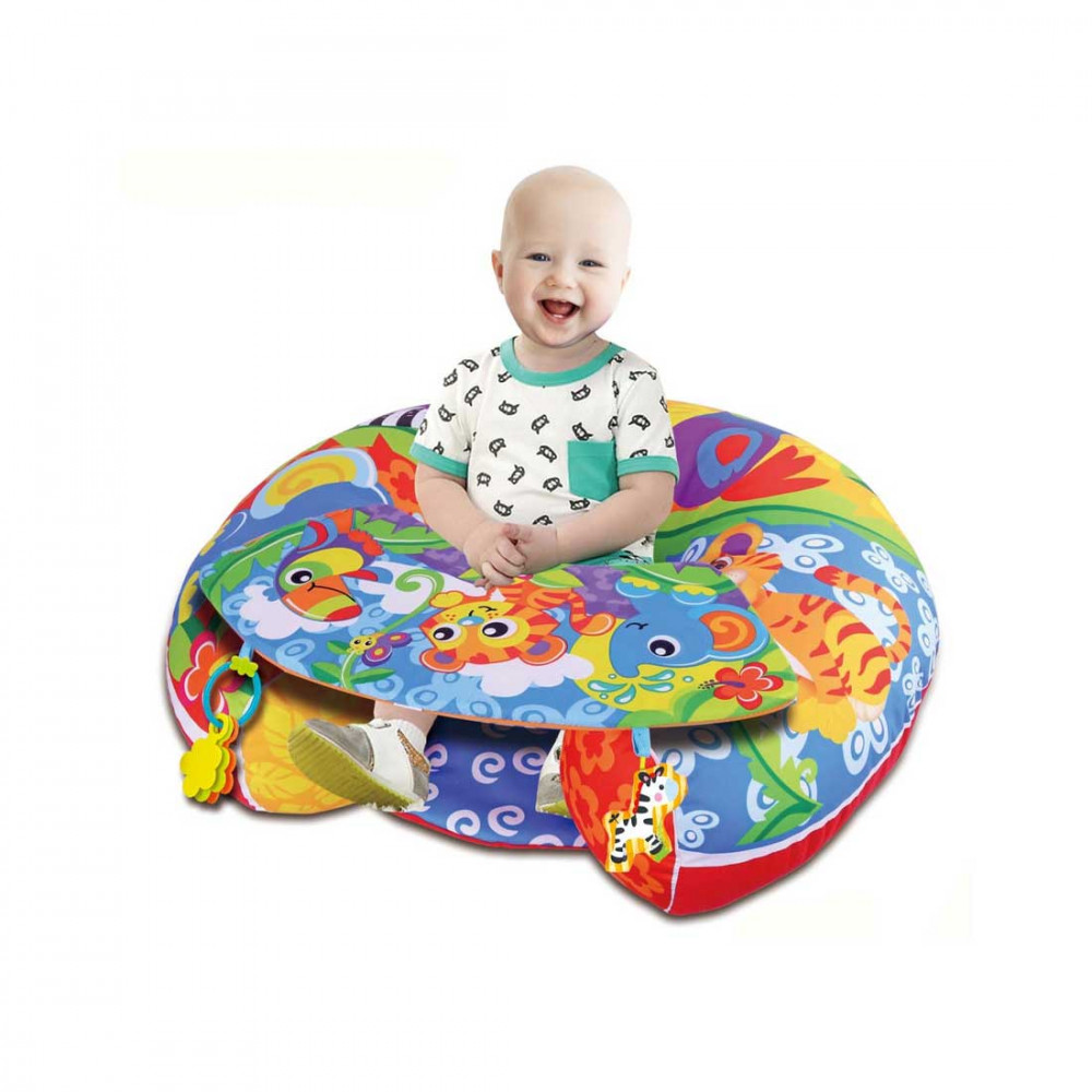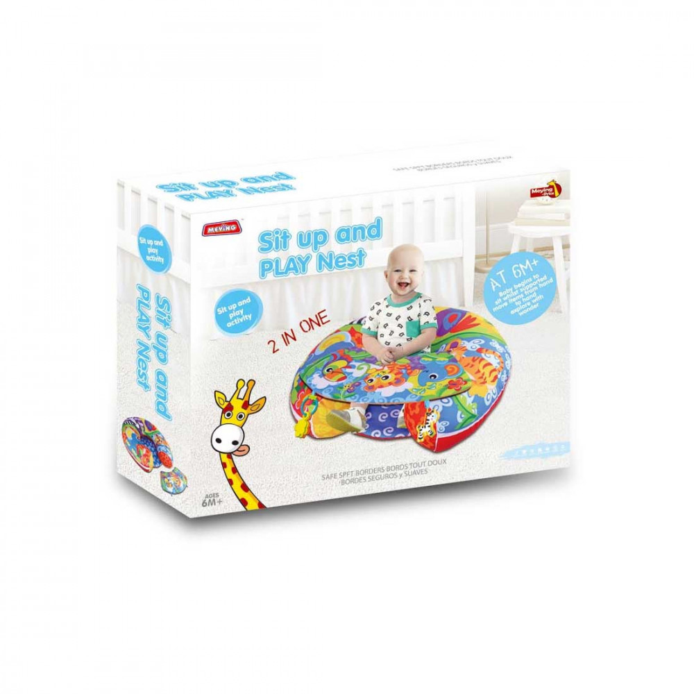 A MEYING Sit Up and PLAY Nest az ideális társ babád fejlődése során, amely egyszerre nyújt kényelmet, biztonságot és szórakozást! Ez a színes, vidám mintájú, felfújható támasztó párna és játszószőnyeg segíti a kicsiket abban, hogy stabilan megtanuljanak ülni, miközben élvezik a játékot. A puha, párnázott kialakítás biztonságot nyújt, míg az élénk színek és aranyos figurák lekötik a baba figyelmét, és serkentik érzékszerveik fejlődését.