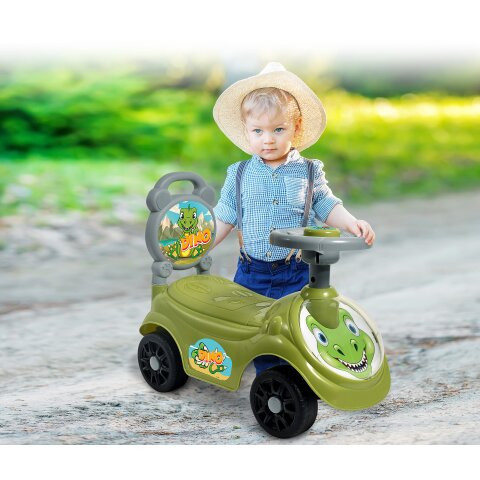 Ez aztán a remek szórakozás! Pattanj fel a vidám dinós kocsira és gurulj vele, amerre csak szeretnél! A dinójárgány még zenél is, így még nagyobb lesz a buli.