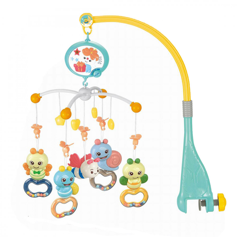 5db kedves csörgős figura található a forgón, mely a gyermek növekedésével csörgőként is használható.