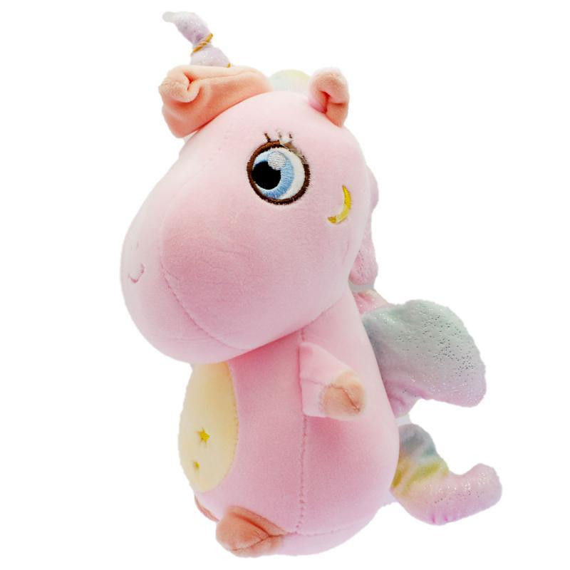 A hímzett szemek és az apró csillagokkal díszített pocak igazán egyedivé varázsolják ezt a csodás kis Unikornist. A szivárványszínű szárnyak és a részletgazdag kialakítás minden kis unikornisrajongó álma.