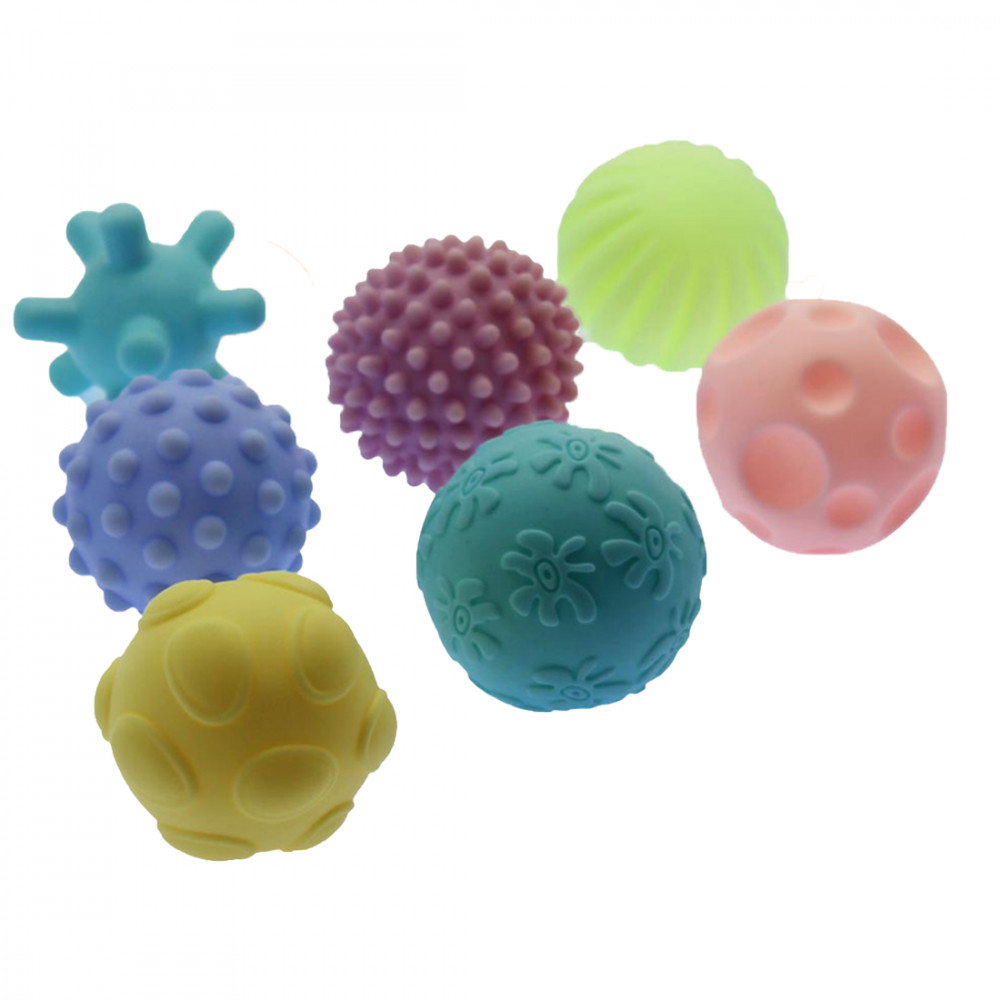Hét különböző tapintásfejlesztő labda található a csomagban, mindegyik más-más élményt nyújt a bébinek, amikor megragadja. A labda fejleszti a térlátást, a tapintást és szem-kéz koordinációt. A csomag 7 db labdát tartalmaz.