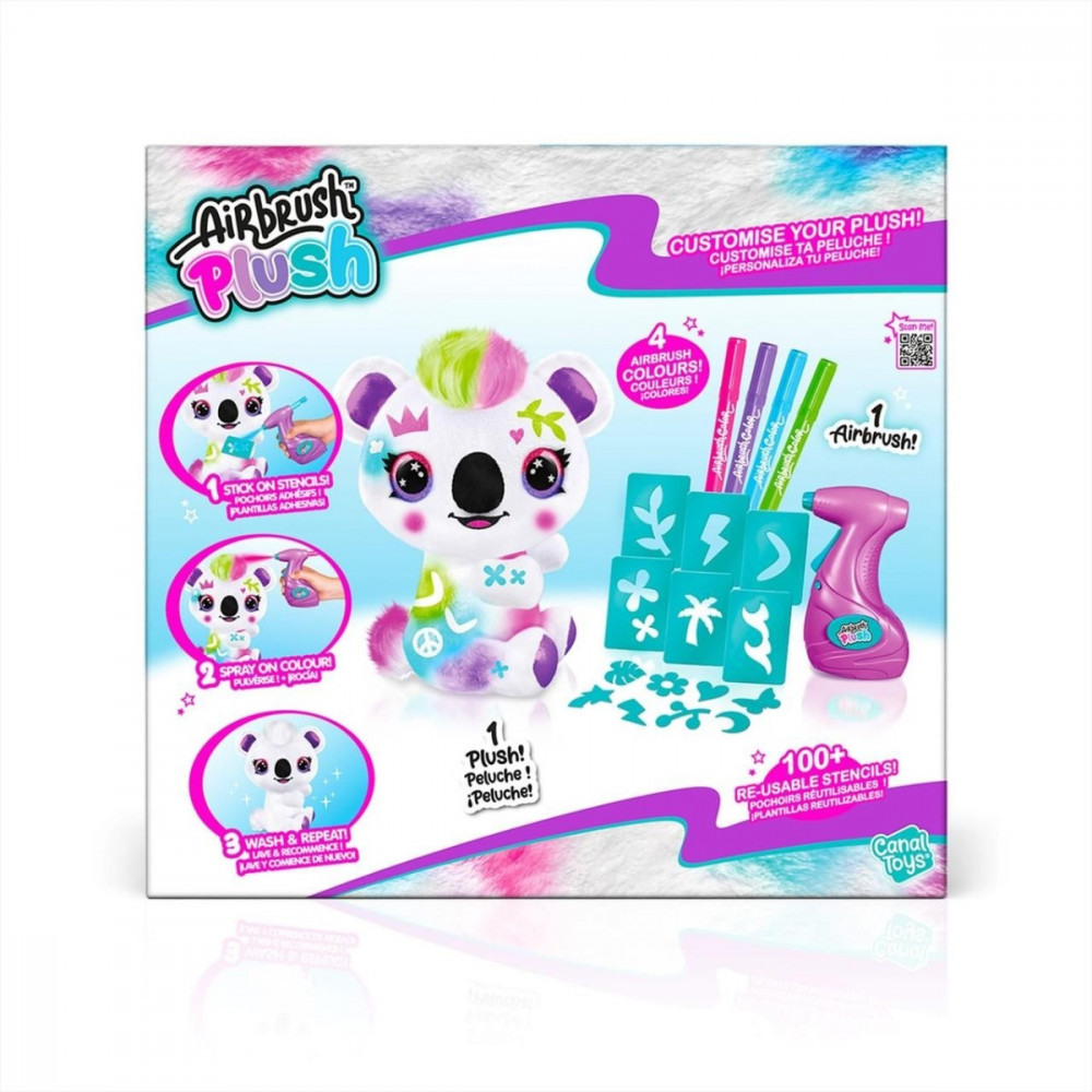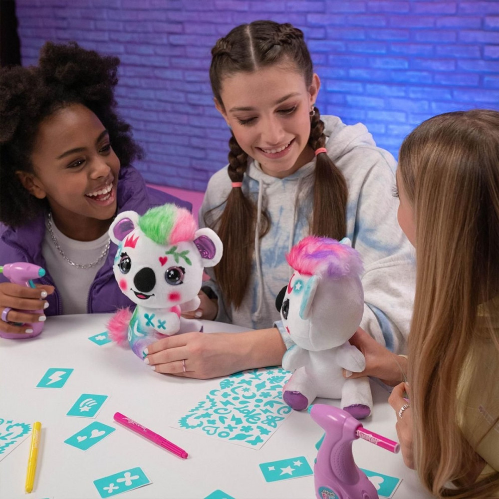 Imádod a koalákat? Válaszd a Style Ever Airbrush színezhető plüss koalát, akinek a fülei és tappancsai lilán csillogóak, a szettben pedig rózsaszín, lila, kék és zöld festéseket találsz. Használd a stencil sablonokat, és válassz több tucat minta közül, akár az egész plüss bundát beszínezheted, miközben a minták maradnak fehérek.