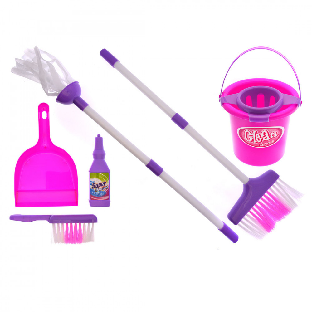 A jó háziasszony mindig ügyel rá, hogy tiszta legyen a lakás. Könnyű dolgod lesz, ha ezzel a szép rózsaszín szettel állsz neki játékból a takarításnak, hiszen van benne seprű és lapát, nyeles seprű és felmosó, és egy vödör is. Pont, mint az igazi.