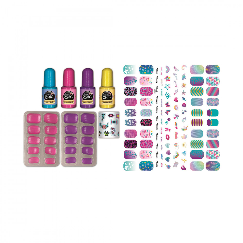 Készülj fel a ragyogásra a Crazy Chic smink- és körömmatrica készlettel! A készletben minden megtalálható a csillogó manikűrhöz, ráadásul egyes matricák a sötétben is világítanak – igazi WOW-hatás garantált!
