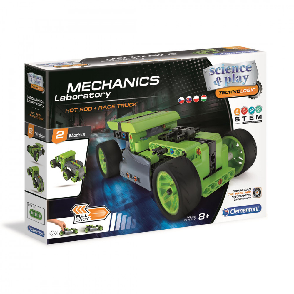 A Mechanikus Labor Hot Rod 2 az 1-ben építőjáték remek választás azoknak a gyerekeknek akik érdeklődnek a műszaki megoldások iránt, hiszen ebben a dobozban egy igazán jól felszerelt műszaki labor található, amelynek segítségével a gyerekek játék közben ismerkedhetnek meg a különféle műszaki megoldásokkal, mint amilyen például a fogaskerekek működése is. A több több tucatnyi építőelemből egy Hot Rod vagy éppen egy teherautó építhető össze amelyek biztos, hogy nagy sikert aratnak majd a kis srácok körében, különösen, hogy hátrahúzós meghajtással akár önerőből is képes egy pár méternyi száguldásra. A Science & Play építőjátékok nem csak a kreatív alkotás élményével gazdagítják a gyerekeket, hanem remekül fejleszti a kicsik finom-motorikus készségeit és a műszaki érzéküket is.