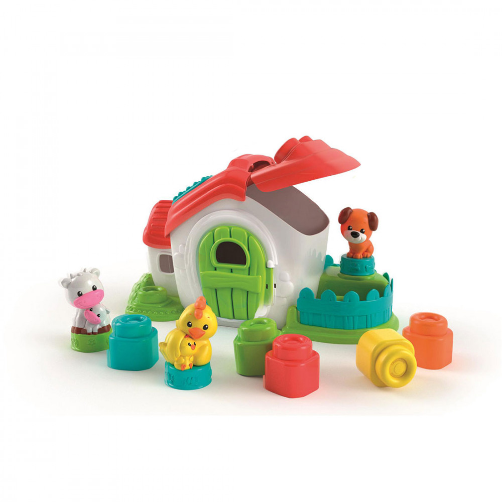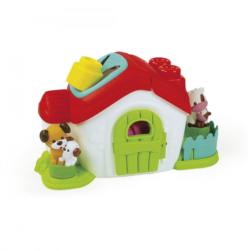 A vidám hangulatról az édes kis állatkák gondoskodnak, melyek segítségével, igazi farmos történetek mesélhetők el. A farm házikója több lehetőséget is nyújt a fejlődésre, ebben segít nyitható ajataja, forma bedobó teteje, melynek segítségével gyermeke motorikus képességei, szem- és kéz koordinációja is fejlődik.