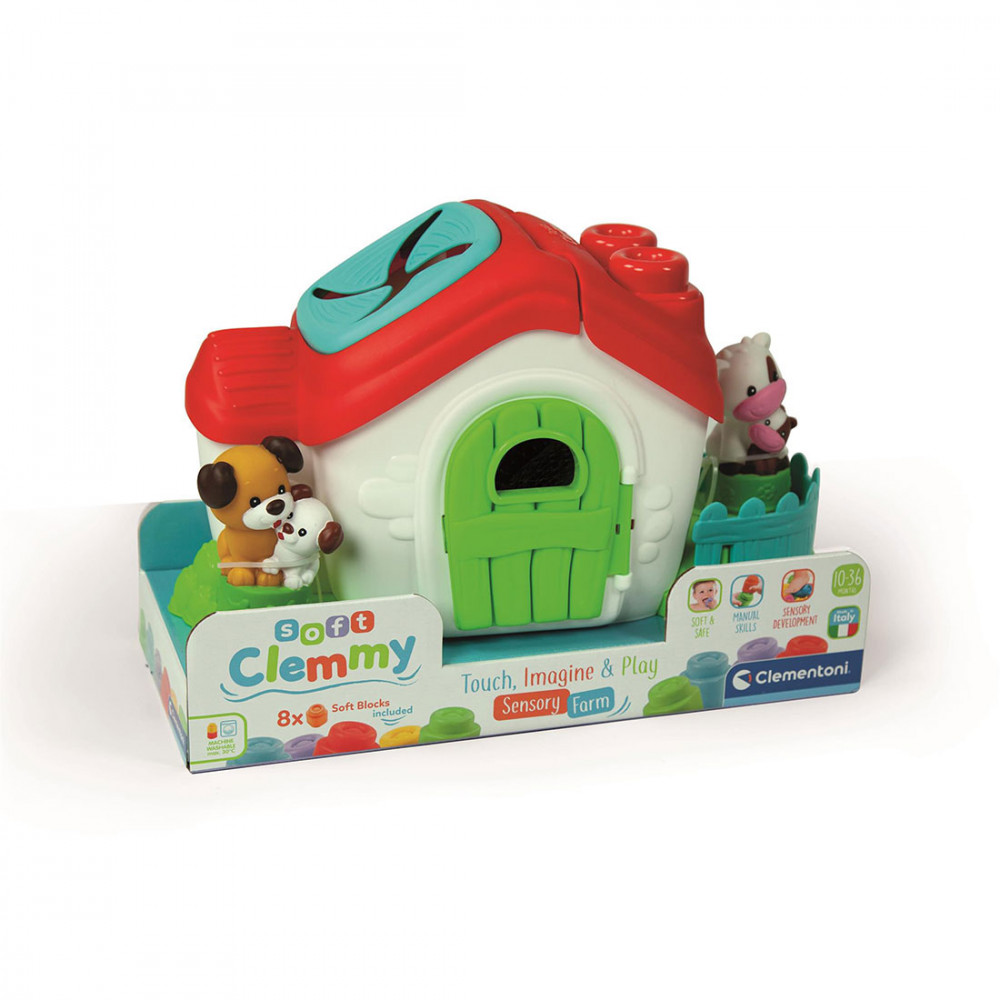 A Soft Clemmy Farm szenzoros formaválogató készségfejlesztő játék kiválóan alkalmas gyermeke számára, ha kiemelt figyelmet szentel a játékos, és egyben szórakoztató készségfejlesztésének. A Clementoni tervezői ezúttal is figyeltek, hogy már a legkisebbek is megismerhessék és használhassák minden adottságukat, felfedezve a játékon keresztül a vidám farmon megtalálható állatokat, formákat, színeket és textúrákat. A Clemmy Farm szenzoros formaválogató készségfejlesztő játék 8 db színes, puha elemből épül fel, melyek könnyedén tisztán tarthatóak, ugyanis moshatóak.
