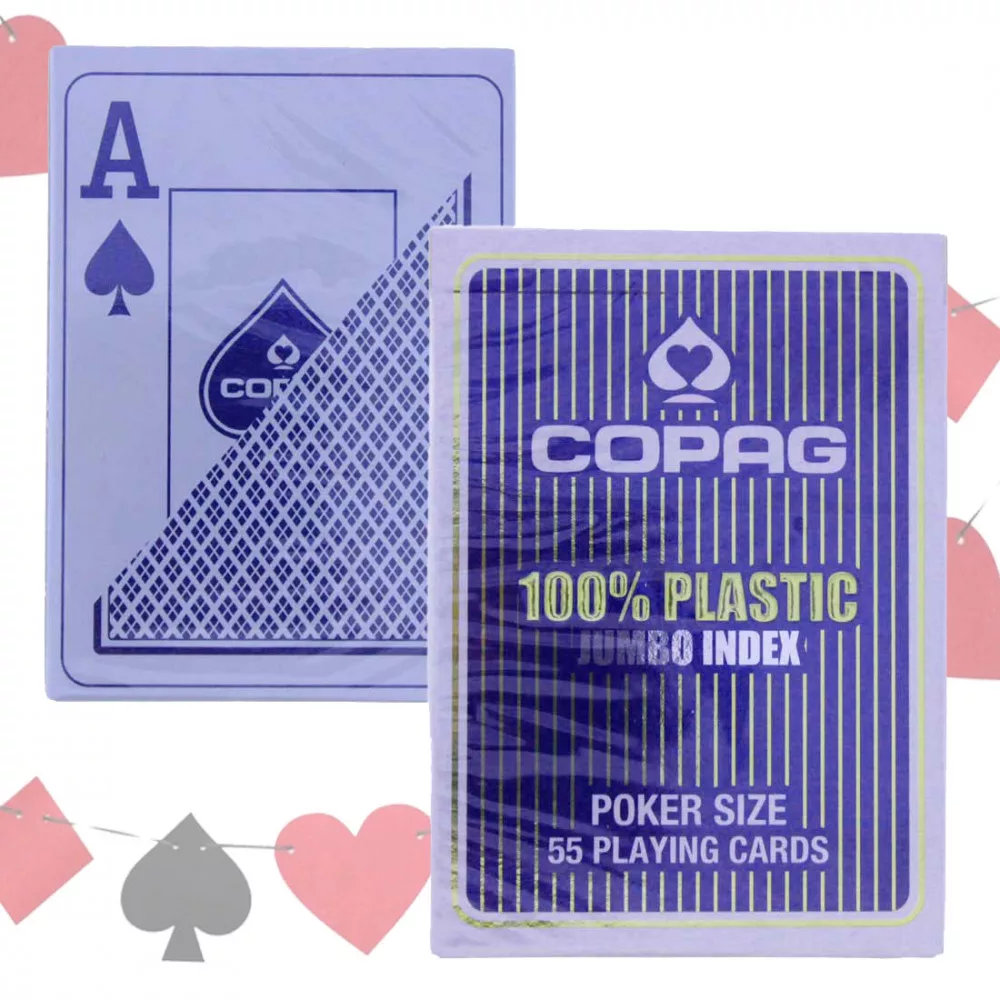 Kiváló minőségű plasztik póker kártyapakli kék hátlappal, két sarkában nagy indexxel.