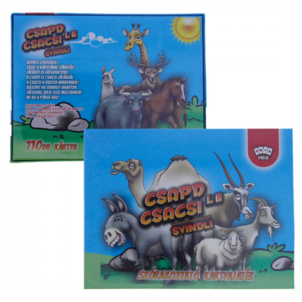 A 110 darab kártyával játszhattok Csapd le csacsit vagy akár svindlit is. A játék csomagolási mérete 10,5x13,5x2 cm. A játék tömege 213 g.