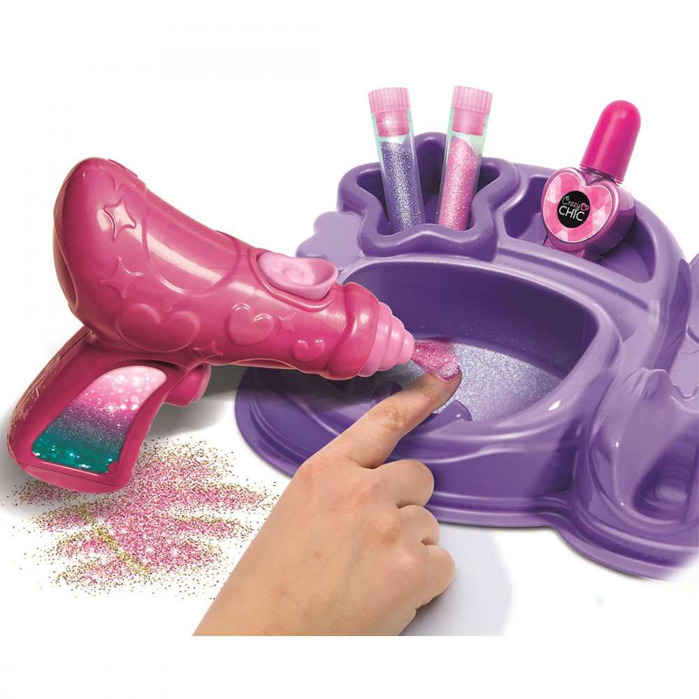 A Clementoni szettjével most könnyedén divatosan csillámossá teheted körmeidet. Körömlakkal fesd ki a körmödet, majd a csillám pisztolyba töltsd be a kiválasztott színű csillámot, hogy könnyedén rápermetezhesd. A letölthető ingyenes mobil alkalmazással a témában különböző ötleteket, praktikákat találsz.