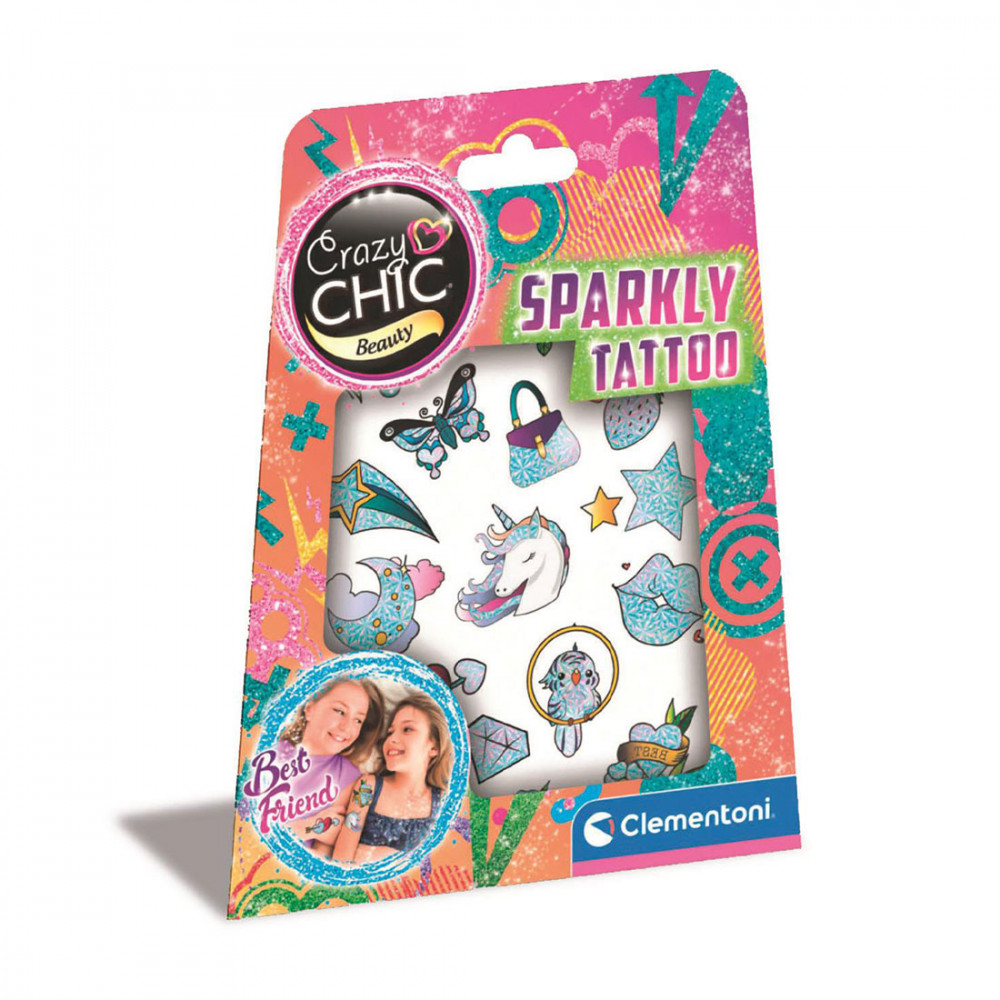 A Clementoni Crazy Chic – Csillámos tetoválás készlet tökéletes választás azoknak a lányoknak, akik imádják a kreatív önkifejezést és a trendi megjelenést! A készlet többféle színes, csillogó tetoválást tartalmaz – köztük unikornist, szíveket, ékszereket és más vidám mintákat.