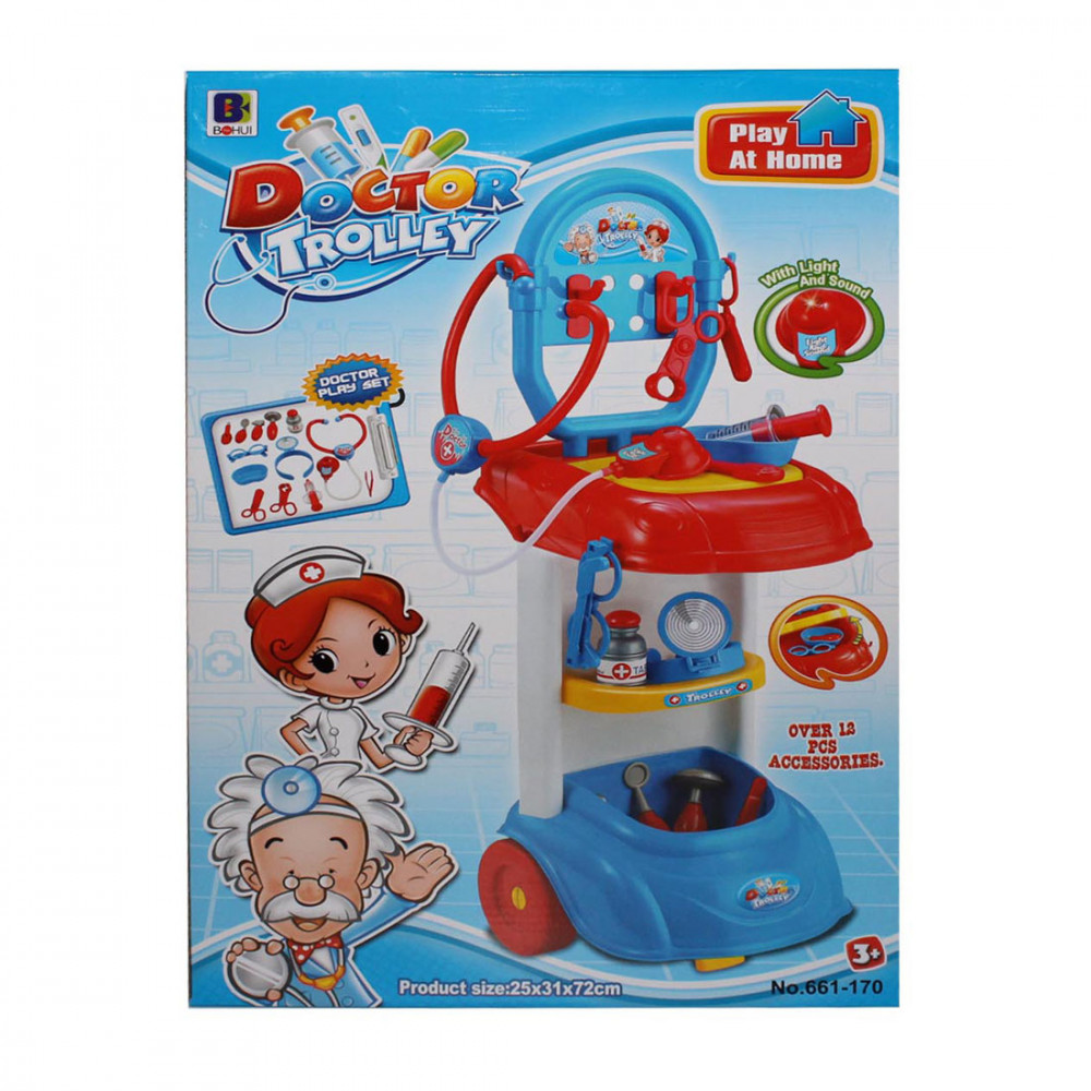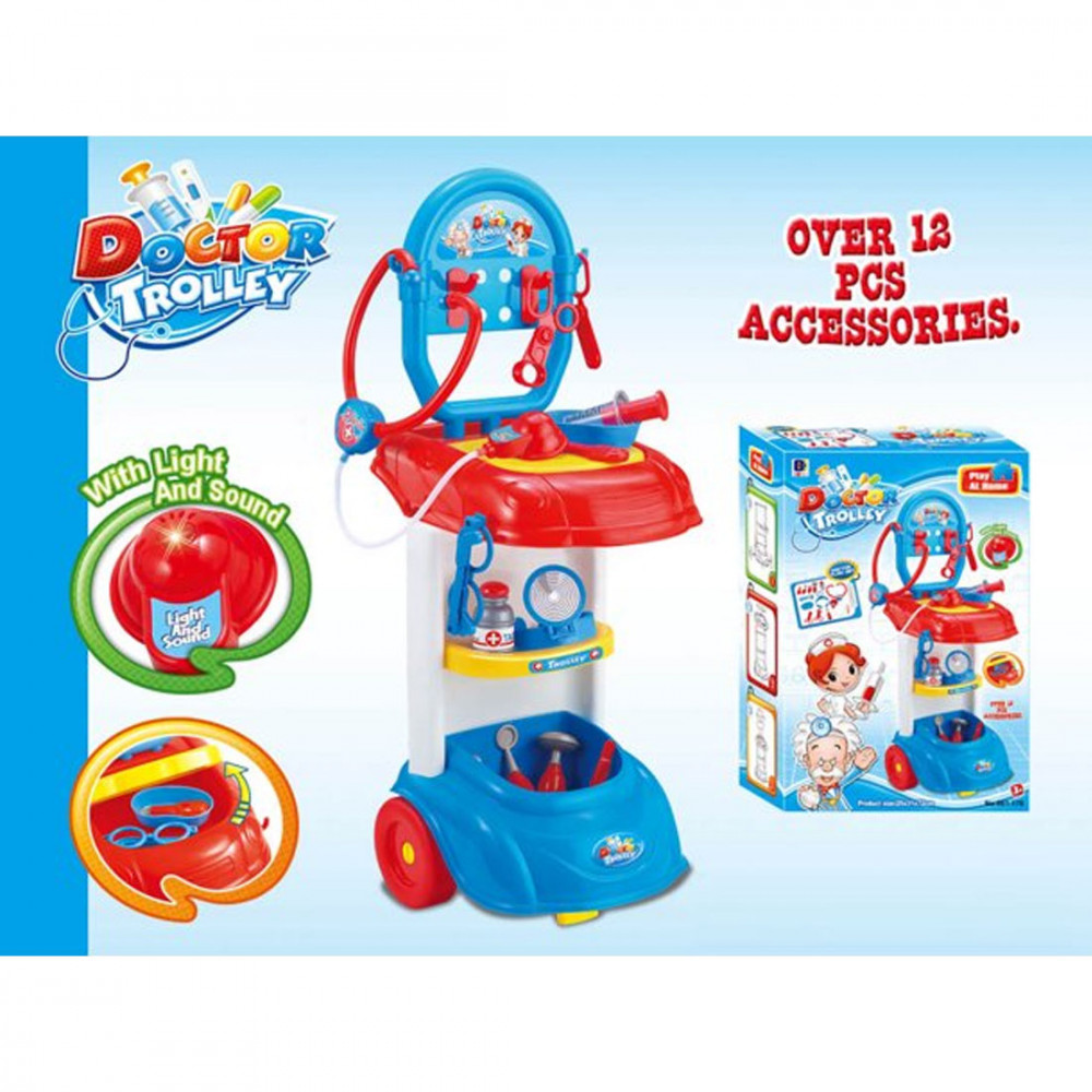Egész nap csak jönnek-mennek a babák a rendelőben. Egyiknek a feje fáj, a másiknak a hasa, a harmadiknak a lába. Vizsgáld meg őket alaposan, ebben segítségedre lesz a tologatható orvosi felszeréses kocsi, amin megtalálsz minden eszközt a vizsgálathoz. Ugye meggyógyítod a babákat? És ugye, ha megismerkedsz ezekkel a jópofa orvosi eszközökkel, nem fogsz félni többé az orvostól?