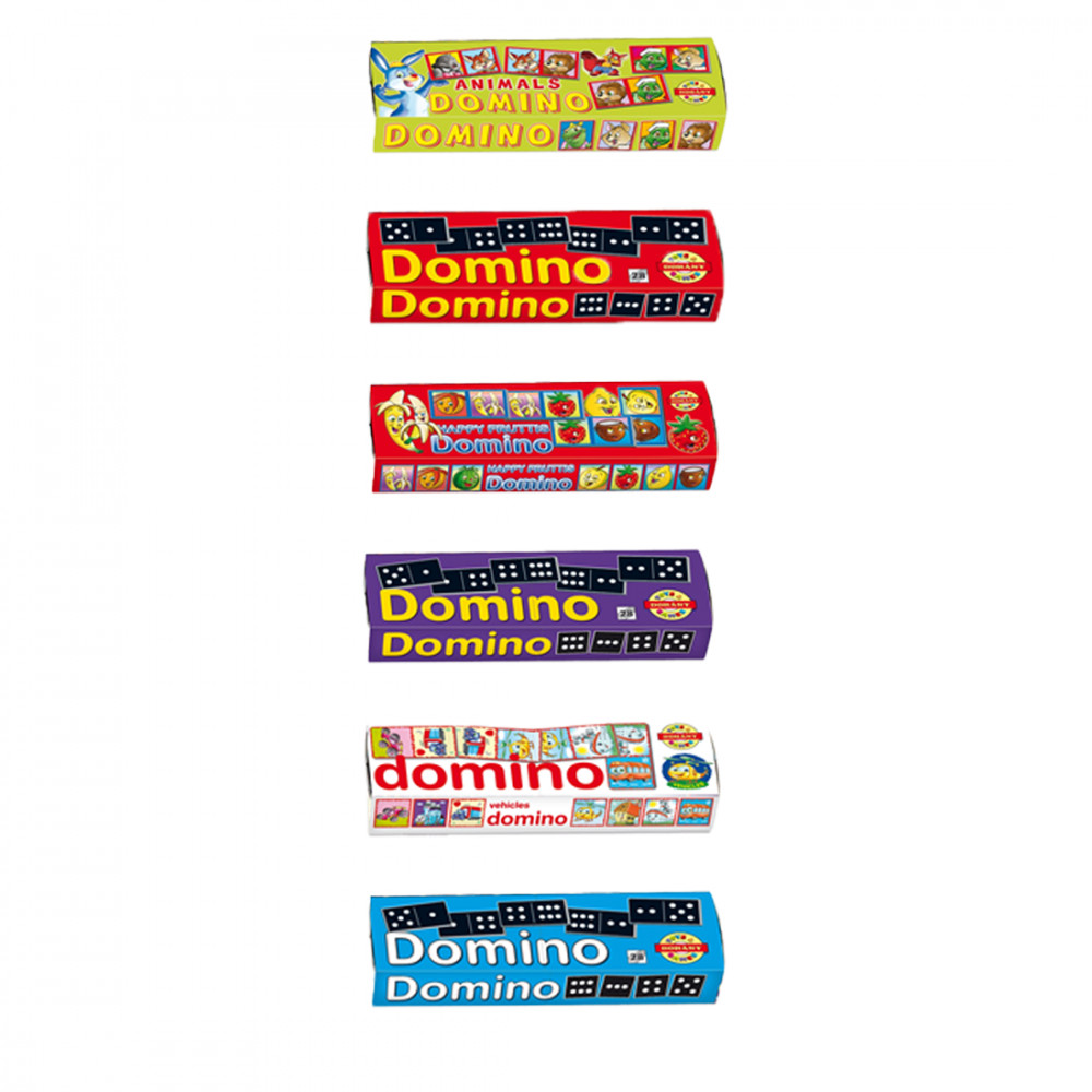 Ki ne ismerné a hagyományos dominó játékot? Szüleink, nagyszüleink is ezzel játszottak, ezért a mai gyerekek sem hagyhatják ki. A készletben 28 db műanyag dominó található, melyek két egyforma részre osztott lapocskákból állnak, mindkét felükön különböző számú pont (0-6) kombinációval vagy állatos, járművel, gyümölcsös mintával.