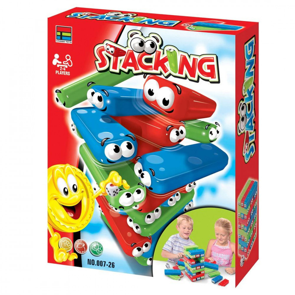 Tartalom: 48 db színes figura (4 színből 12-12 db), játékmező, talapzat, állvány, dobókocka.