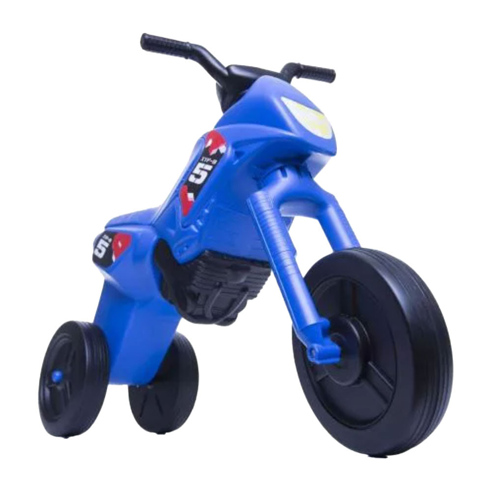 Indulhat a kaland? Ezzel a 3 kerekű lábbal hajtós enduro motorral minden kis versenyző igazi motorosnak érezheti magát! A stabil és könnyű műanyag kialakításnak köszönhetően biztonságos és könnyen irányítható, így a legkisebbek is gond nélkül száguldozhatnak a kertben vagy a lakásban.