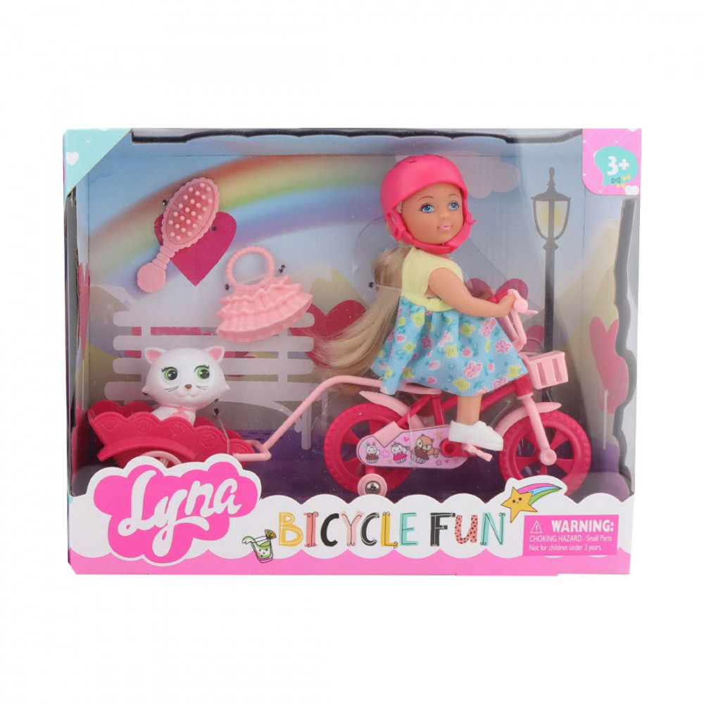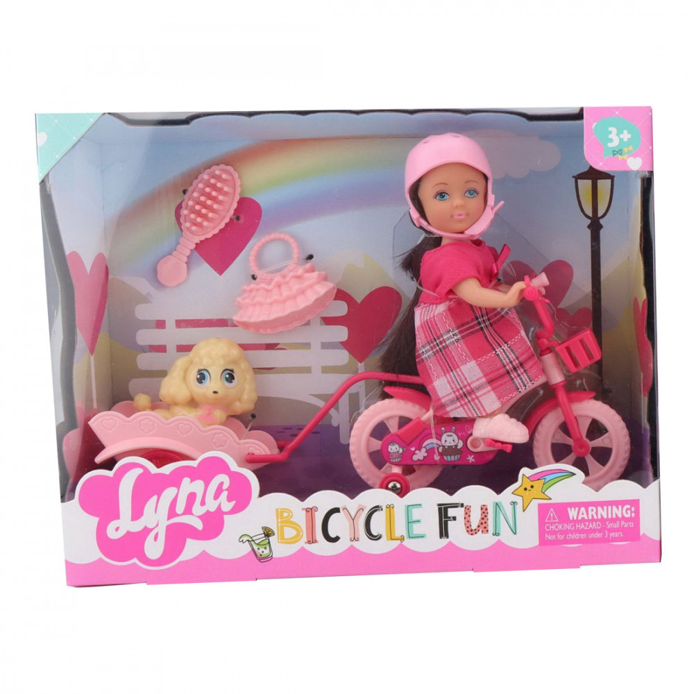 Évi baba bicikli túrára indul kedvenc kutyusával/cicusával a pótkocsiban. A dobozban több kiegészítő is található az élvezetes szerepjátékhoz.