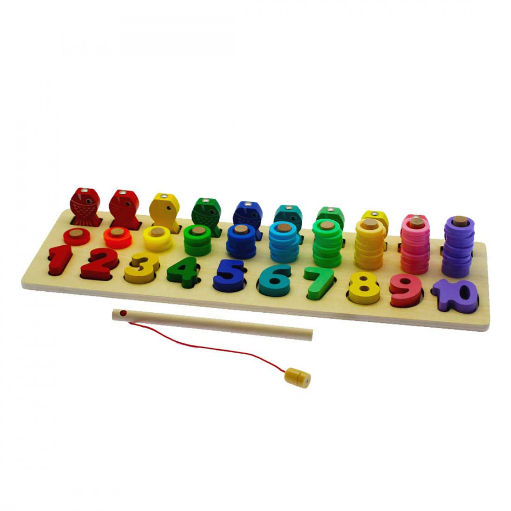 Tanítsd gyermekedet játékosan ezzel a szuper készségfejlesztő és számolást oktató montesori jellegű fa játékkal. A halacskák egyesével meg vannak számozva 1-től 10-ig, amit ki lehet horgászni, valamint a számoló karikákkal gyerekjáték a számok gyors elsajátítása a gyermeked számára. A csomagolás mérete: 39x13 cm