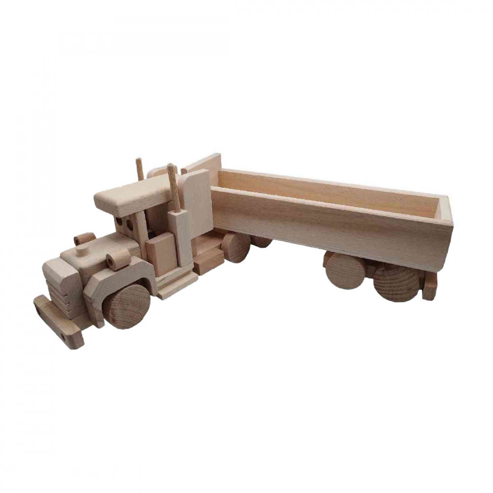Fedezd fel a fuvarozás világát és a különböző áruk szállítását ezzel a minőségi fa teherautóval és pótkocsival. Ezek a játékok nemcsak szórakoztatóak, hanem segítik a gyerekeket a kreatív szerepjátékban . Biztonságos és tartós játékélményt kínálnak.