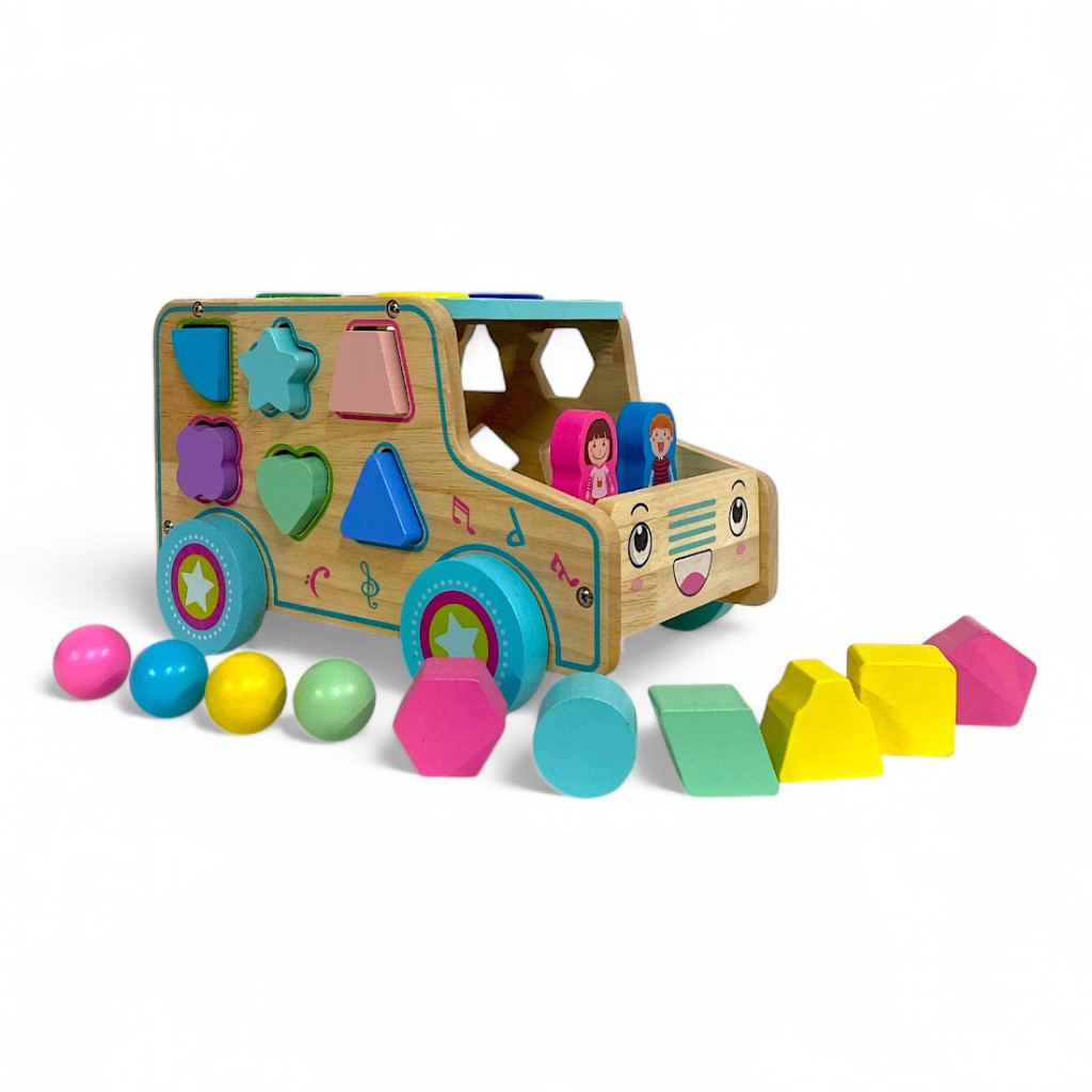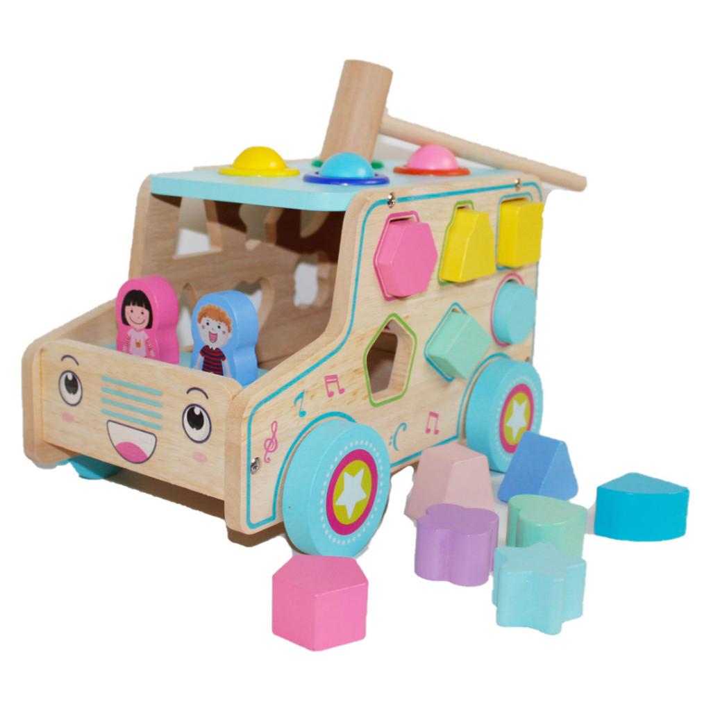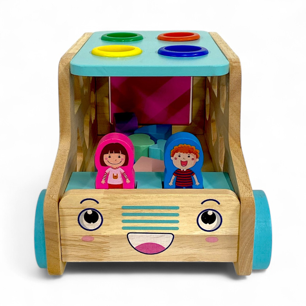 Beilaluna – Igazi fa készségfejlesztő játék: Formaberakós és beütős autó