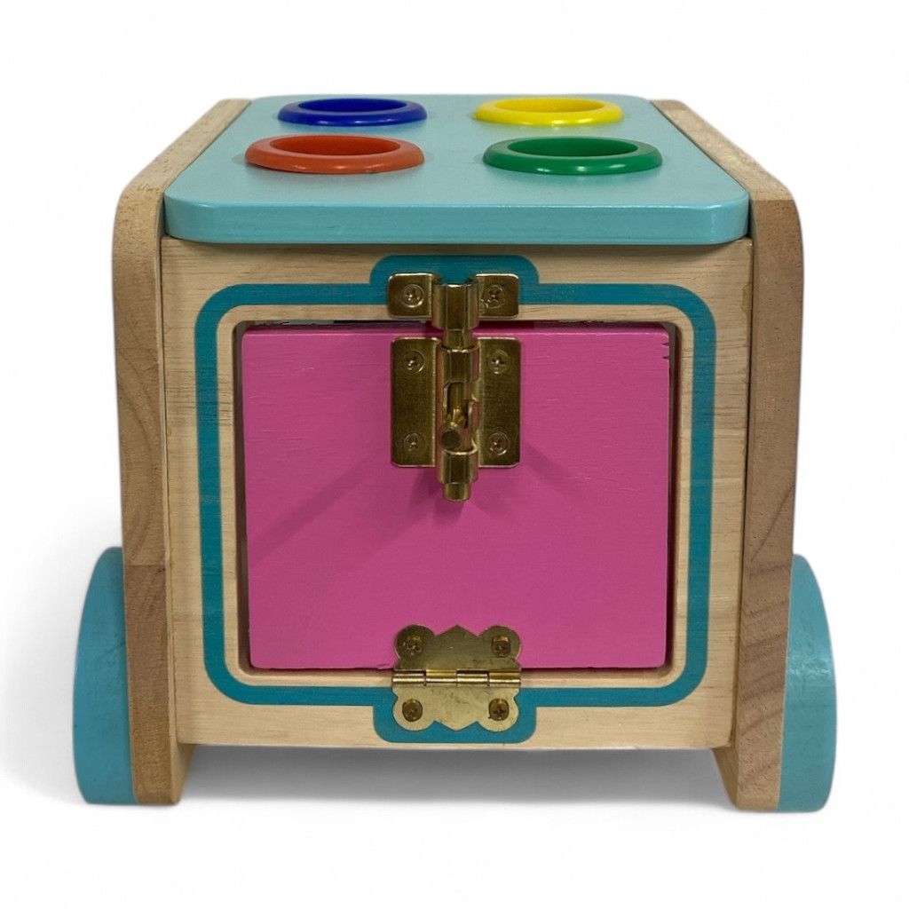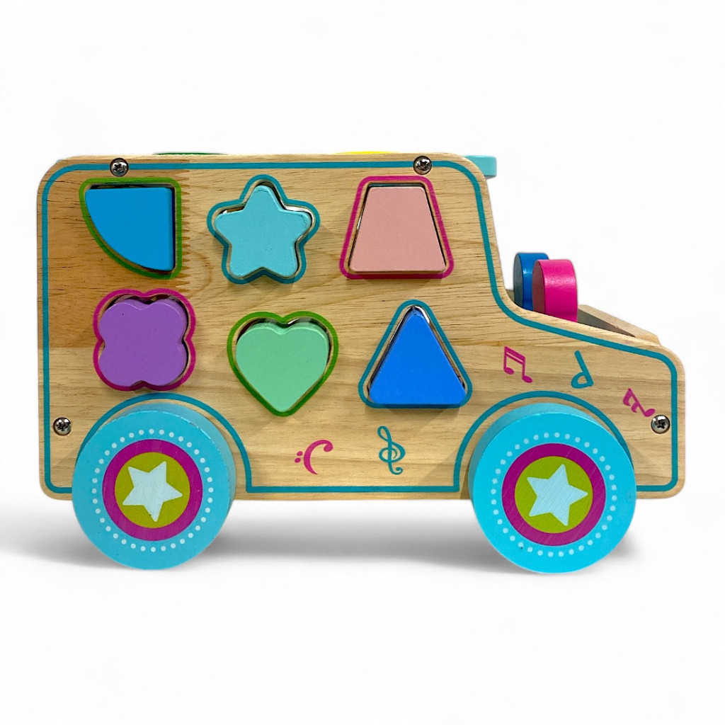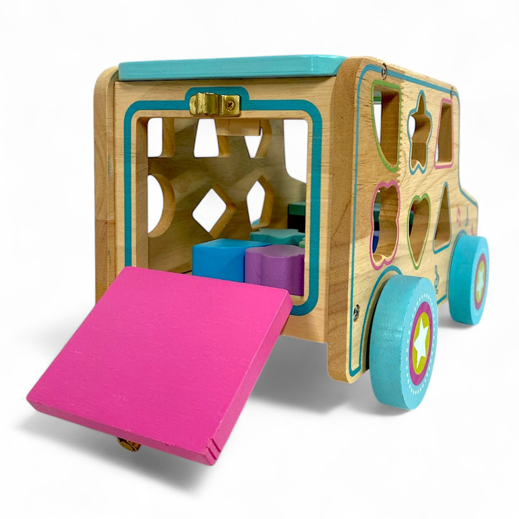 A játék oldalain található színes formák segítenek a formák és színek felismerésében, míg a kalapáccsal beütős funkció erősíti a koncentrációt és a precizitást. Az autó teteje is tele van interaktív lehetőségekkel, a mozgatható alkatrészek pedig izgalmasabbá teszik a játékélményt. Az autó hátsó ajtaja kinyitható, hogy könnyen hozzáférhess a formákhoz, így a pakolás és a játék folytatása egyszerű és élvezetes.