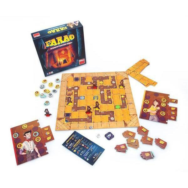 Találd meg Tutanhamon sírját! A Fáraó társasjátékkal most igazi ókori kalandban lehet részed. Ebben a labirintusokkal átszőtt, kihívásokkal teli pályán nem lesz egyszerű a dolgod. Kerüld ki a csapdákat és szerezd meg az értékes tárgyakat, amik segítenek megtalálni a híres sírt. Ez a stratégiai társasjáték hatalmas szórakozás lehet az egész család számára. Könnyen megtanulható, ezért már hat éves kortól könnyen részt tudnak benne venni a kisebbek. Dobj a kockával, igazodj el a labirintus rejtelmes folyosói között és légy Te az, aki elsőként megtalálja a sírt. A játékidő 30-40 perc, így több menetet is lejátszhattok, akár barátaitok körében is. Összesen 6 ember vehet részt a játékban, ennek köszönhetően nagyobb csapattal is leülhettek egy izgalmas menet erejére. Valódi szórakozás lehet ez a játék bármely korosztály számára. A készlet tartalmaz egy játéktáblát, gyűjthető korongokat, felfedező játékfigurákat, 1 db dobókockát és az utat építő kártyákat.