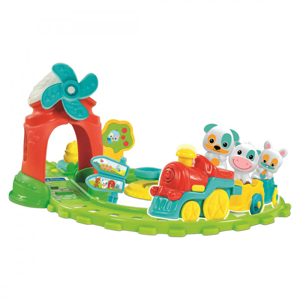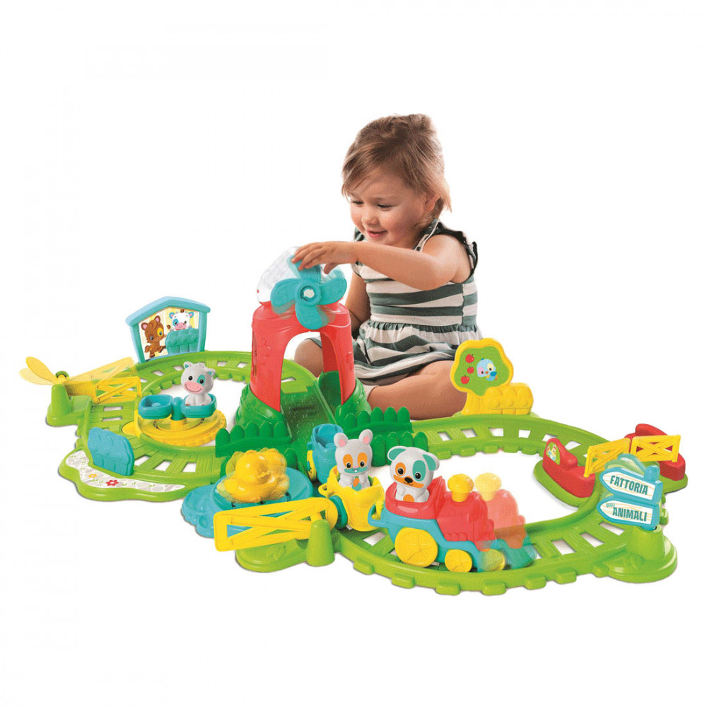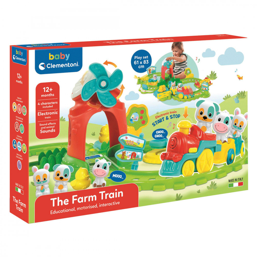 A Clementoni Farm vonattal interaktív játékkészlet hatalmas élményt nyújt a fantáziával teli gyermekek számára! A vonat végig robog a farmos környezetben épült sínpályán. Útja során elrobog a kis tó mellett, keresztül bújik a szélmalom kapuján majd át az istálló ajtaján. Gyümölcsös fák és vidám legelésző állatok kísérik figyelemmel a szórakoztató vonat útját, amire bármelyik házi állat felszállhat egy körre.