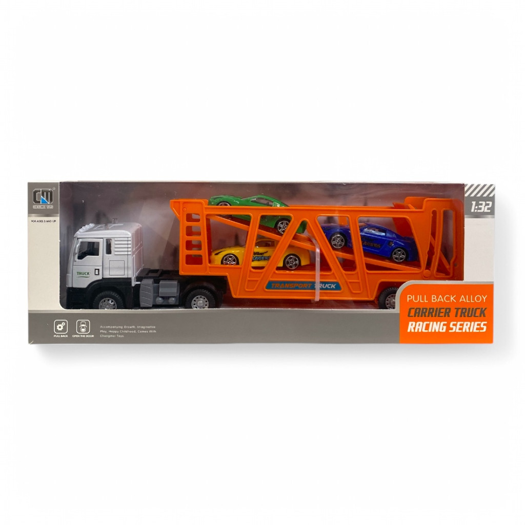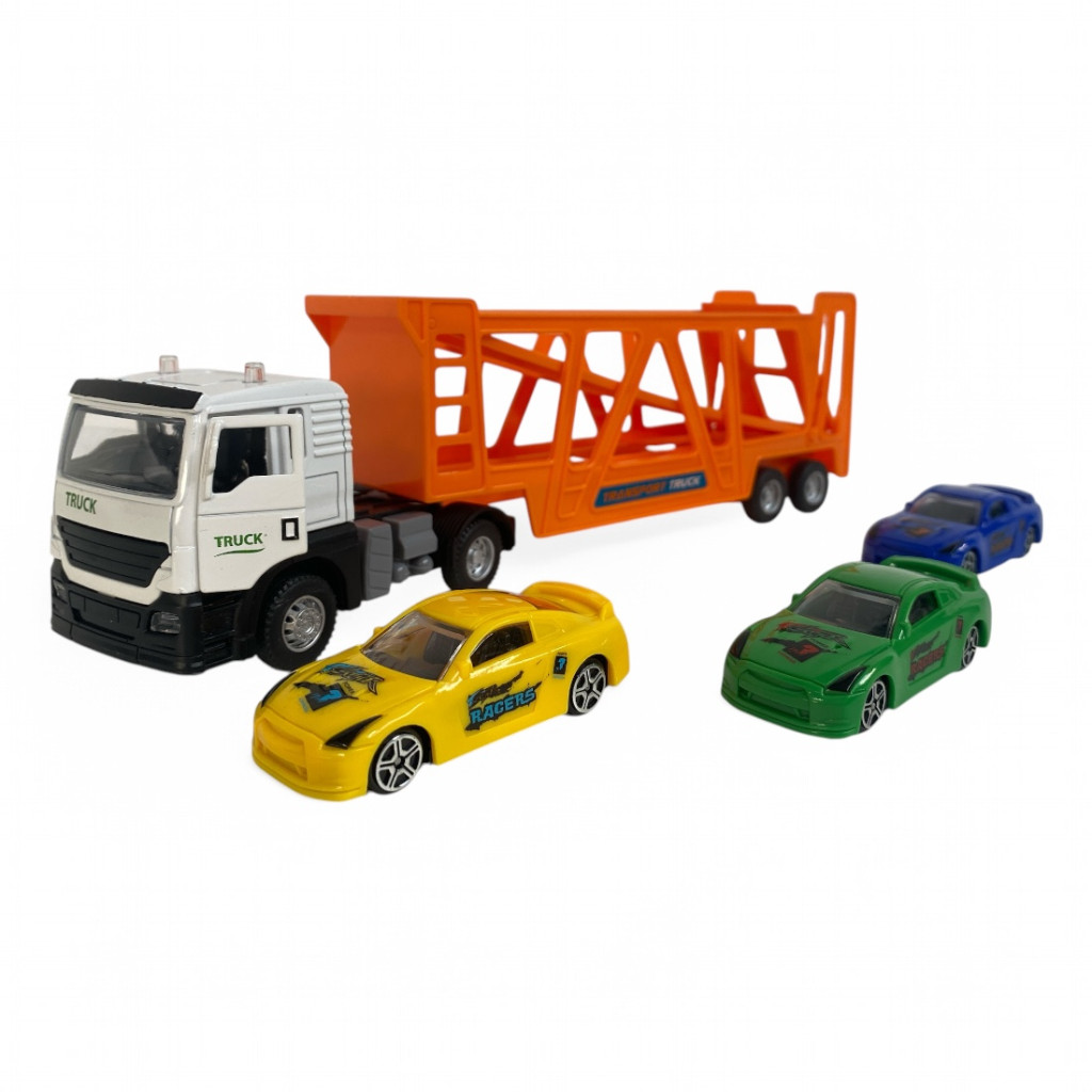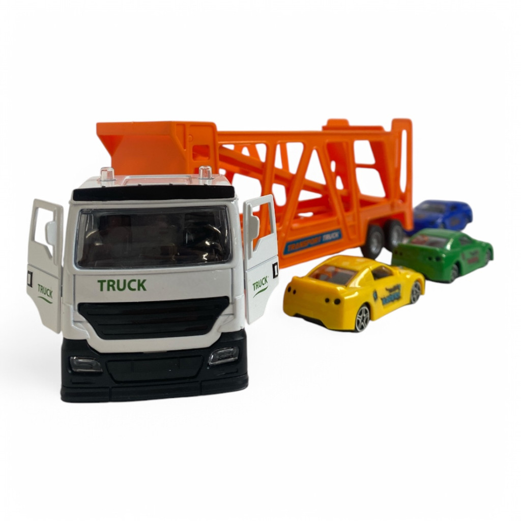 Készen állsz az autók szállítására? Ezzel a fém autószállító trélerrel garantáltan valósághű játékmenet vár minden kis sofőrre! A nagyméretű, részletgazdag kamion masszív fém fülkével, nyitható ajtókkal és egy levehető, tágas trélerrel rendelkezik, amelyben három sportautó fér el biztonságosan.