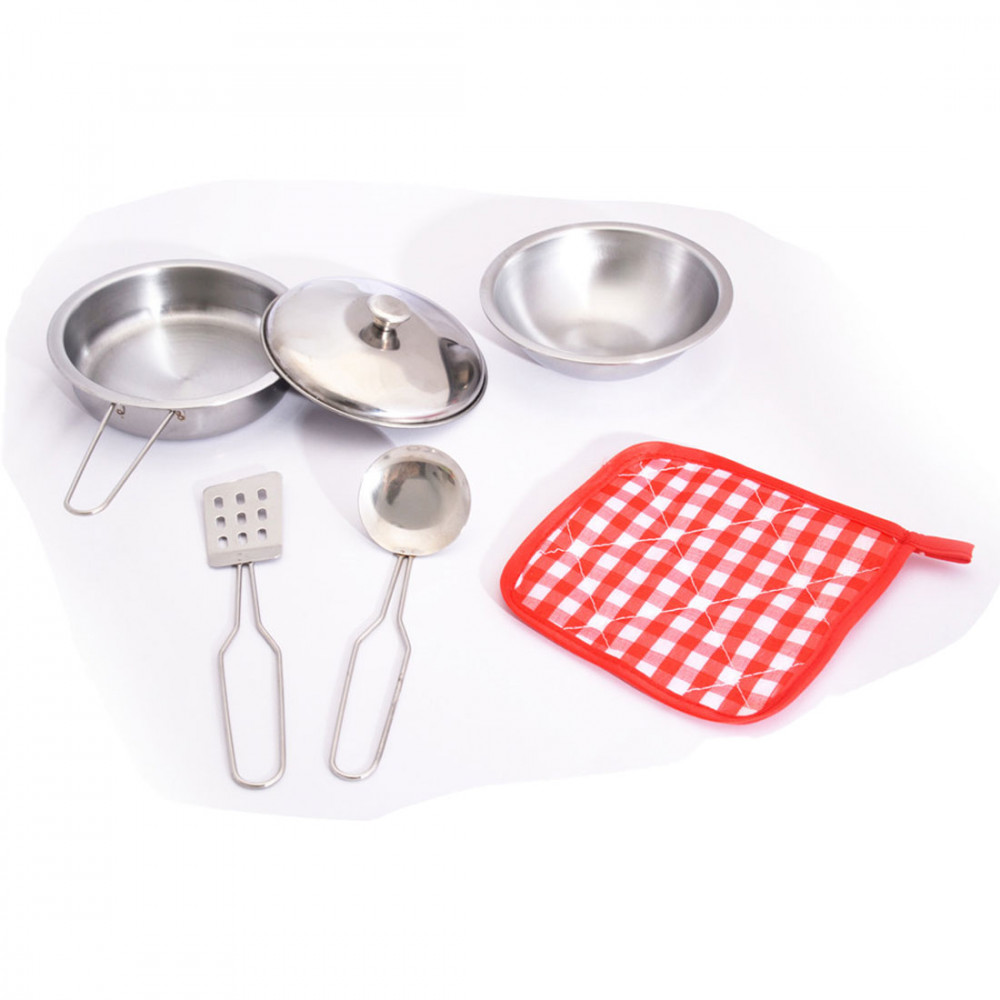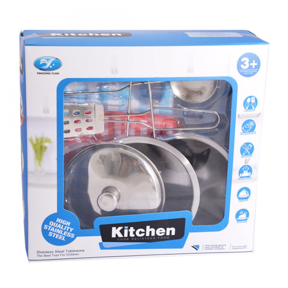 Ez a fém edénykészlet egy kiváló játék a kis konyhafőnökök és kis szakácsok számára, akik szeretnek szórakozni a konyhában. A fém edénykészletben minden megtalálható, amire a gyermekednek szüksége lehet ahhoz, hogy elkészítse a saját "ételkölteményeit."