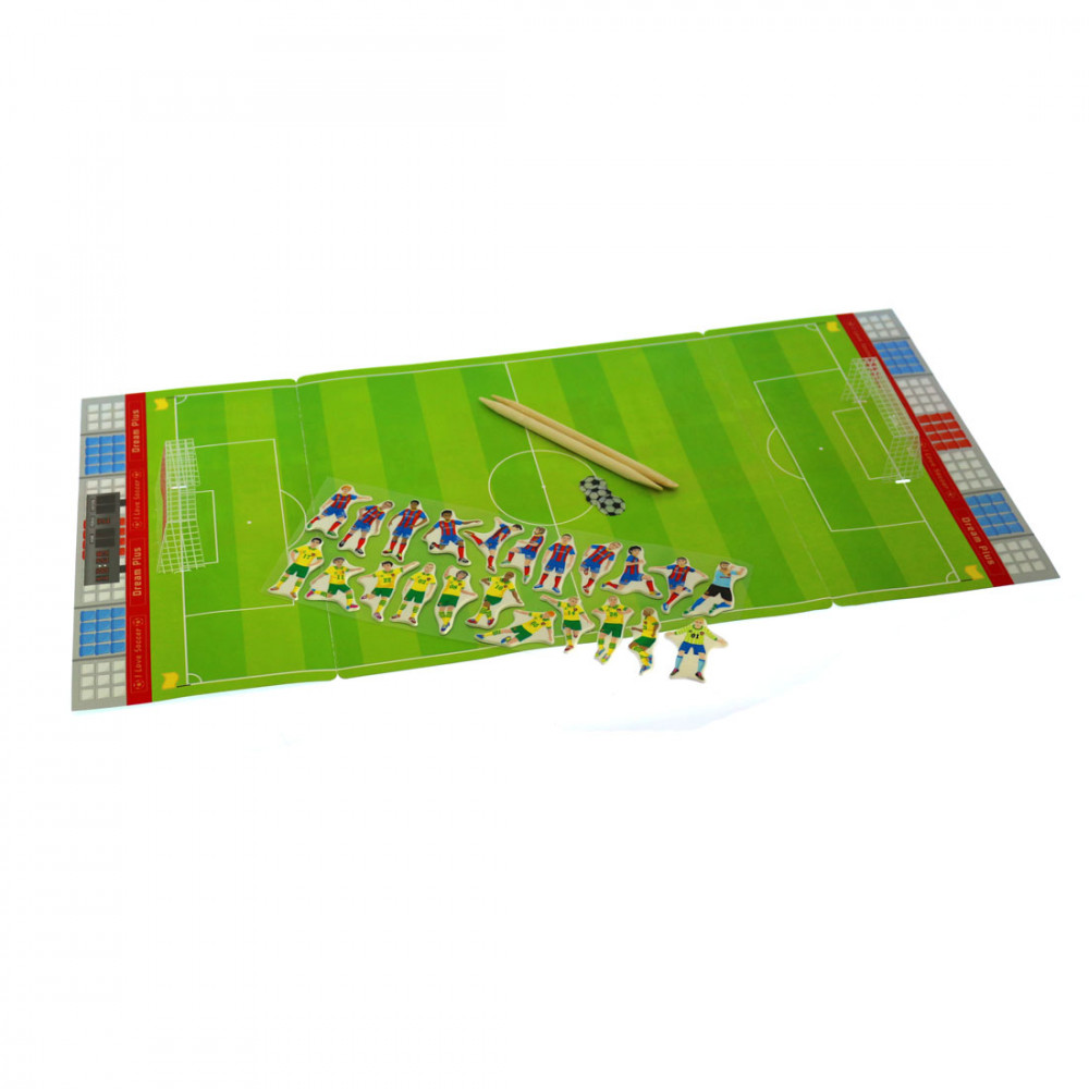 Terítsd ki a pályát, állítsd fel a kapukat, helyezd el a játékosokat a füvön, mintha éppen játszanának, és indulhat a pöckölés! A pálca segítségével pöccintsd a labdát a kapuba. Ha a labda az ellenfél játékosához pattan, akkor ő mehet tovább.