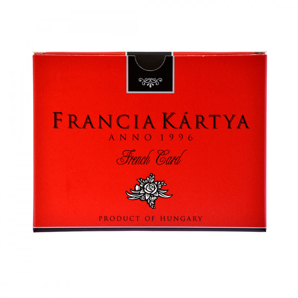 Klasszikus francia kártyapakli. A játék csomagolási mérete 19x2x9 cm. A játék tömege 190 g.